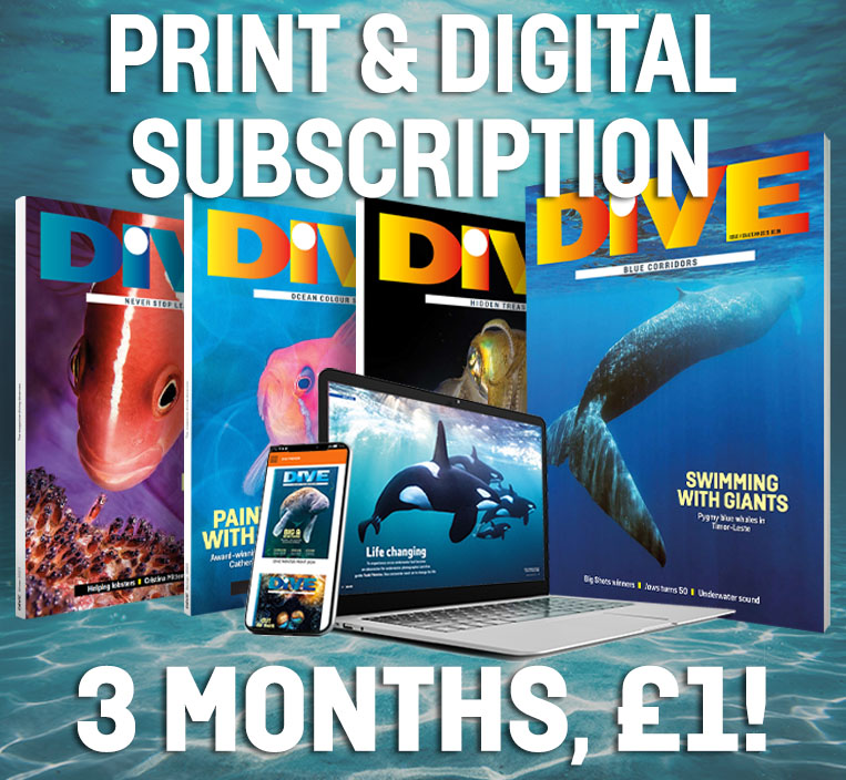 DIVE Magazine’s beautiful quarterly publication is printed on glossy art-quality stock, showcasing some of the best underwater photography in the world in the way it was meant to be seen. Accompanied by superbly written articles from some of the best writers in the field, DIVE is a coffee-table treasure, not a magazine-rack filler. Subscribe from £22.99* per year, or take advantage of our £1 for 3 months print and digital trial subscription special offer** to make sure you don't miss out!