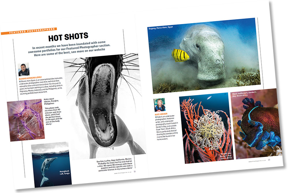 Our Featured Photographer series on DIVE's website has become so popular that we are putting out portfolios of spectacular pictures on an almost weekly basis. But photographs are best viewed in print - especially on the high-gloss art-quality paper on which DIVE magazine is printed. Check out some of the best of the best of our Featured Photographers from the last few months.