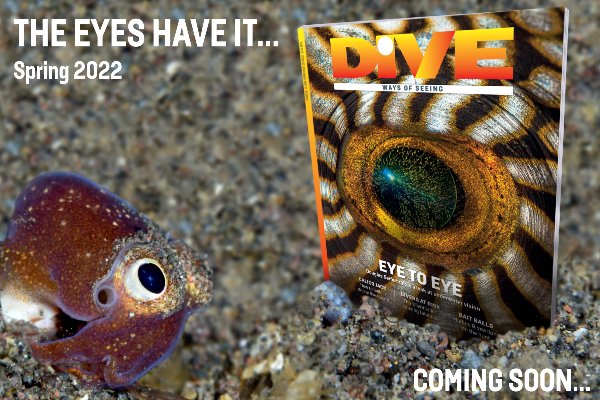 We are busy putting the finishing touches to our Spring 2022 print issue and this quarter, we're looking at some visibly enlightening topics. Douglas David Seifert investigates the eyes of the underwater world, accompanied by some out-of-this-world macro photography; Alfie Minnaar sets sail with the unlikely captains of Raja Ampat's Calico Jack; Christian Horras almost gets speared by marlin chasing a Baja Magdalena bait ball and Mark 'Crowley' Russell reports how high blood pressure may live up to its reputation as a 'silent killer' of scuba divers. Plus - we head back to Bonaire with Jeremy Brown; round up the best of the season's Featured Photographers; review some of our favourite books and - of course - take a look at another curiosity of the ocean depths.
