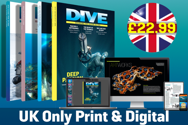 Our Autumn 2022 magazine is all about the new experiences that diving can bring us, as long as we're prepared to put the effort in - as expert photographer Alfred Minnaar found out when he spent four months learning to cave dive in the cenotes of Mexico's Yucatán peninsula. Douglas David Seifert explores the complex dynamics of cleaning stations, along with more of his stunning photography; more of which is provided by Tom St George as he dusts off his macro lens to explore the black sands of Dumaguete and Puerto Galera in the Philippines. We feature an extract from marine biologist and poet Fiona Gell's new book, Spring Tides, as she comes face-to-shell with ancient quahog; and Mark 'Crowley' Russell discusses why 'advanced' courses are not meant to be advanced, and why it's imperative that divers never stop learnin. Plus: book reviews, news, our latest marine curio and more. Buy your art-quality coffee-table print copy now from the magazine stands, or from our online store priced at £4.99*. Subscribe for a year to our digital magazine for just £9.99, or in print and digital from just £22.99 to make sure you never miss an issue.