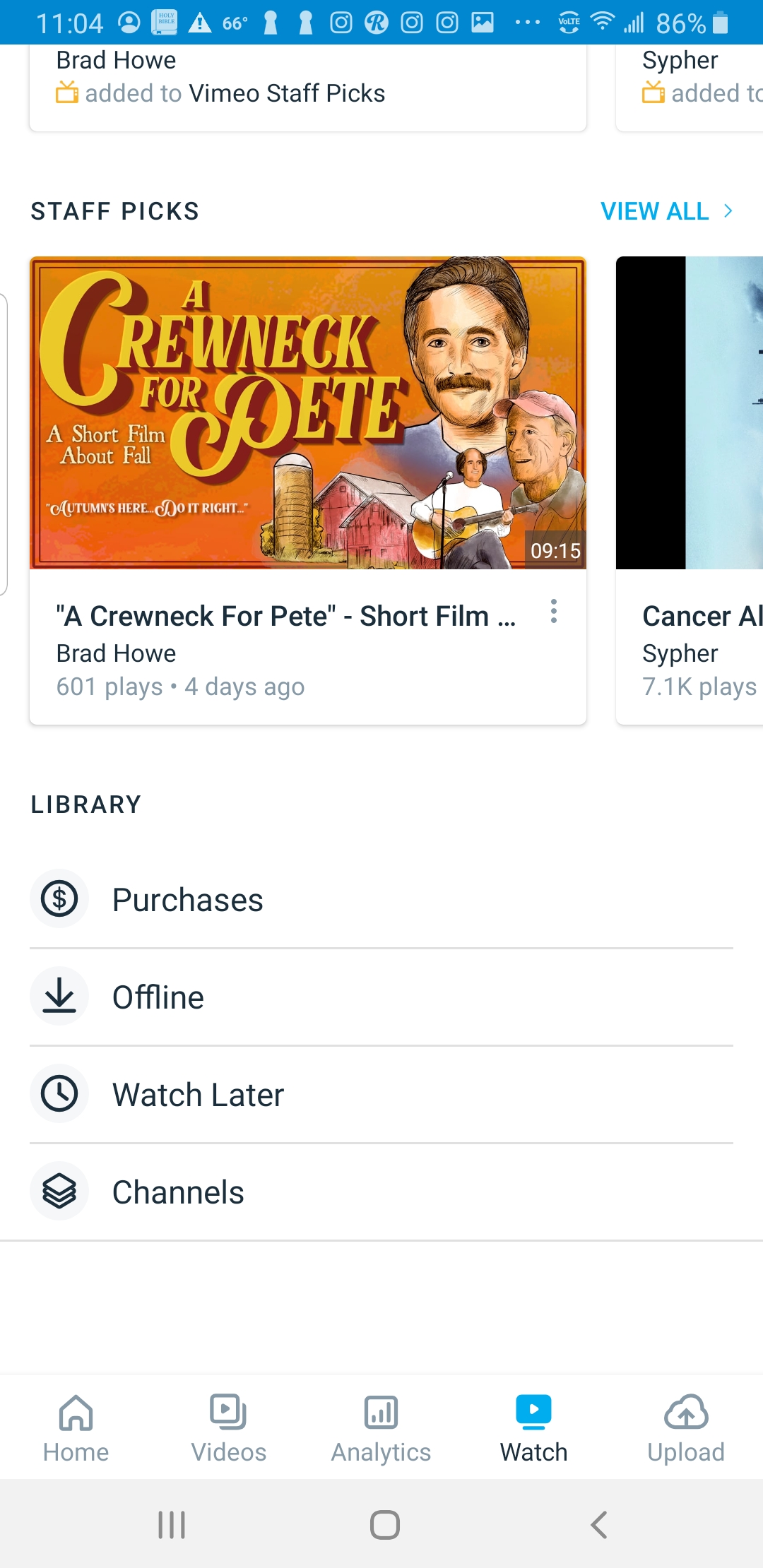 6. Once in the Watch area, scroll down and select 'Watch Later'. See the android phone screenshot #2.