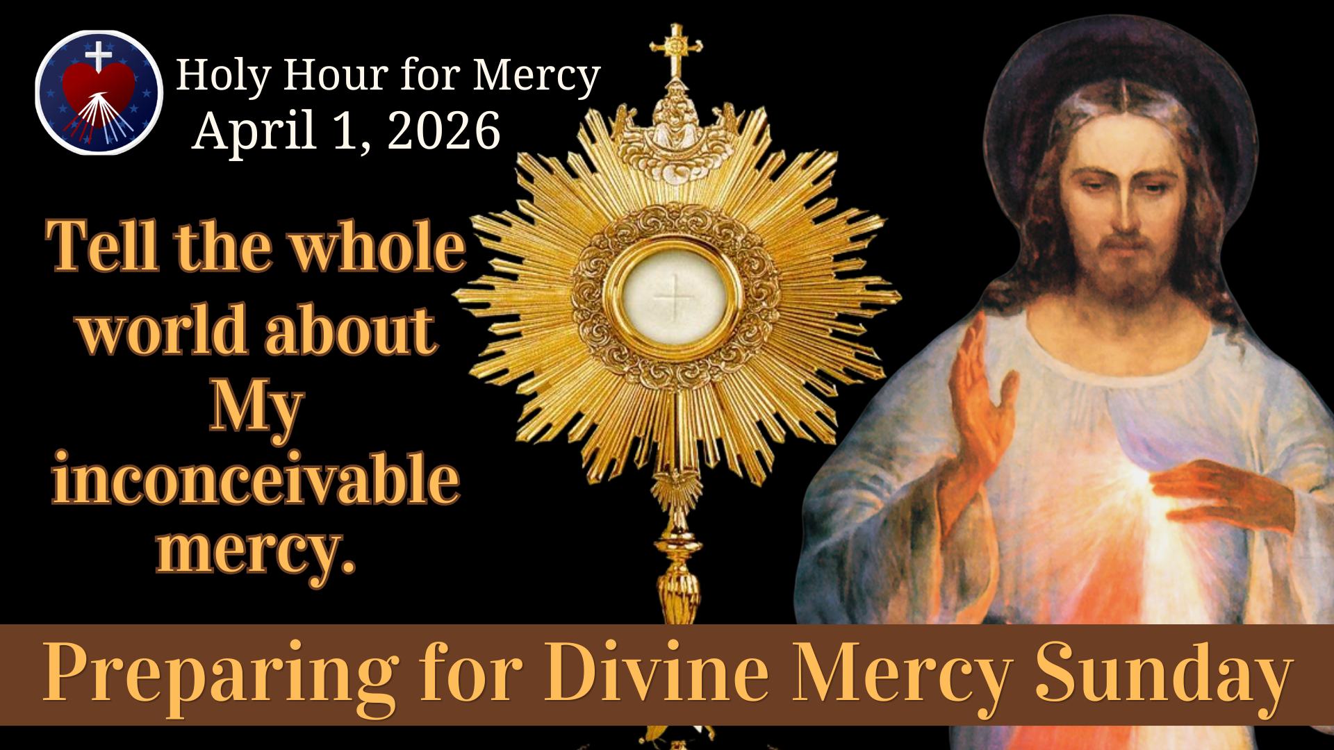 We will regroup on Monday, April 6, and continue to meet through Saturday, April 11, the Vigil of the Feast of Mercy, via Zoom and live-stream platforms (YouTube, Rumble, X).