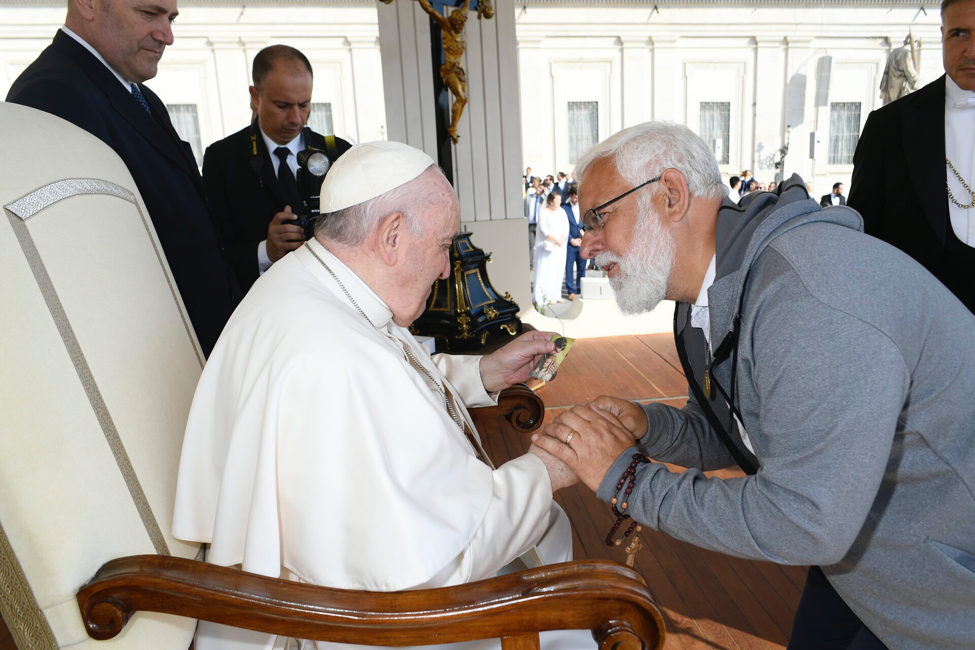 Online Prayer Meeting and ____________________________________________________________ | | The St. Joseph Holy Cloak Novena Last October, Yves Jaques of The Hearts of the Holy Family unexpectedly had the opportunity to meet Pope Francis personally. At the last moment, Yves reached into his pocket and pulled out one of the holy cards of St. Joseph he always had on hand to pass along to others. Yves handed the holy father the card and said, "St. Joseph wants you to have this." Pope Francis looked at the card intently, looked Yves in the eye, and told him, "Pray to St. Joseph for me." Through prayer and discussion with Yves, and in light of upcoming Synod and Synodality and all that threatens family, country, and Church, we believe it is time to turn to St. Joseph with one of the most beautiful and efficacious prayers of the Church, the Novena of the Holy Cloak of St. Joseph. Today, together with Yves, we will share the power of this prayer and plans for Divine Mercy for America to "go to Joseph," beginning September 8th, and concluding on October 7, the Feast of Our Lady of Victory. This precious treasury of prayers in honor of St. Joseph is to be prayed for 30 days, commemorating the earthly thirty years which St. Joseph spent in the company of our Lord. St. Teresa of Avila vouched for its efficaciousness, writing, “If you really want to believe in it, prove it to yourself by reciting the Novena and you will be finally convinced.” | |