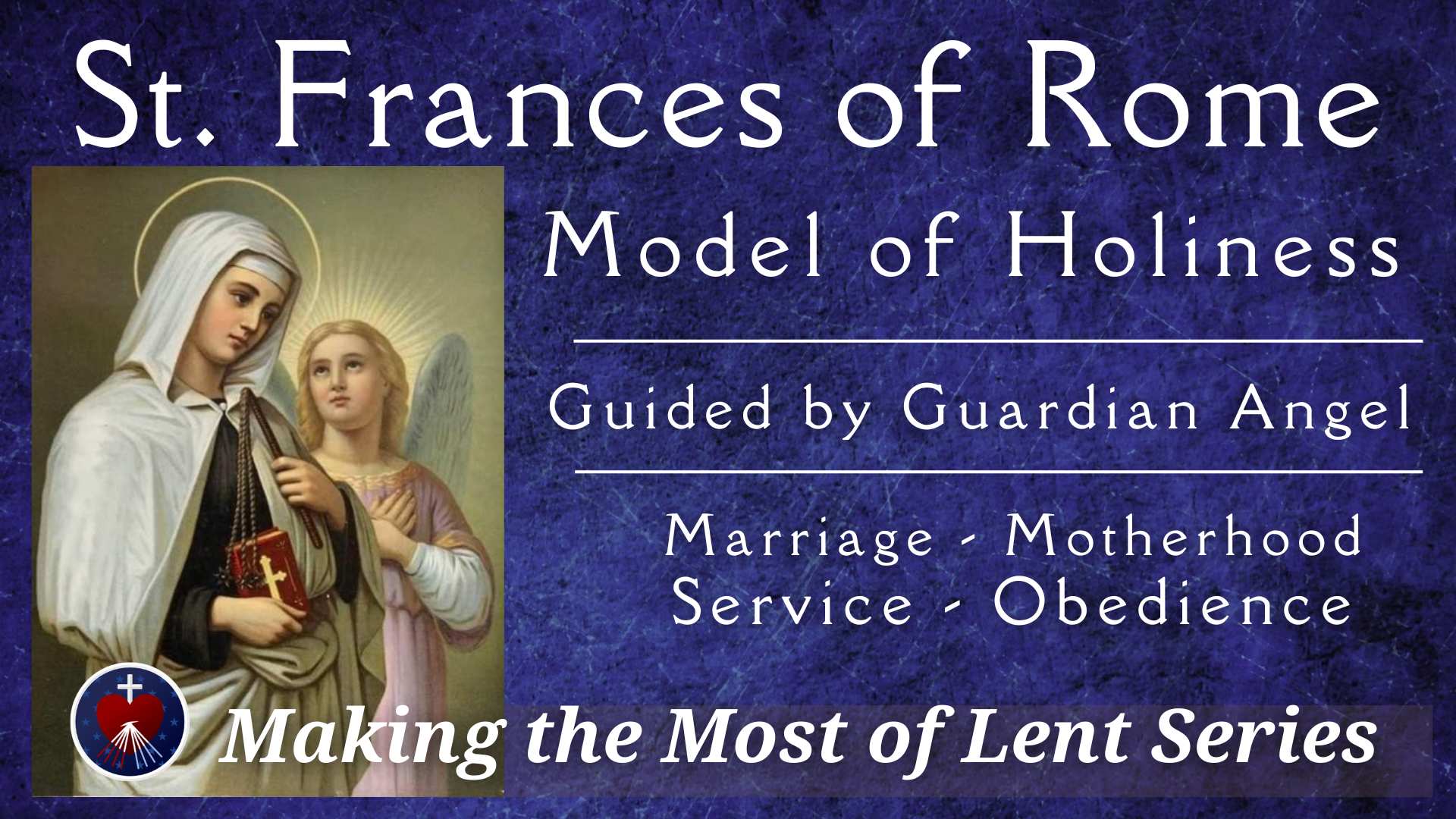 March 9th is the Feast of St. Frances of Rome. Born into the nobility in Rome in 1384, during a time of war, plague, and political instability, she is known for her life of service to the sick and poor and for her visions of heaven, hell, purgatory, St. Francis, and more.The saint's constant companion was her Guardian Angel, who strengthened her to endure grief, loss, and exhaustion.As we conclude this month's novena and continue on our Lenten journey, facing the difficulties of this life, it is the perfect time to get to know this St. Frances and seek the intercession of her who said, "Heaven's presence does not remove suffering, but accompanies it." We are grateful to Kevin McCarthy for sharing more about her with us today before the holy hour. |