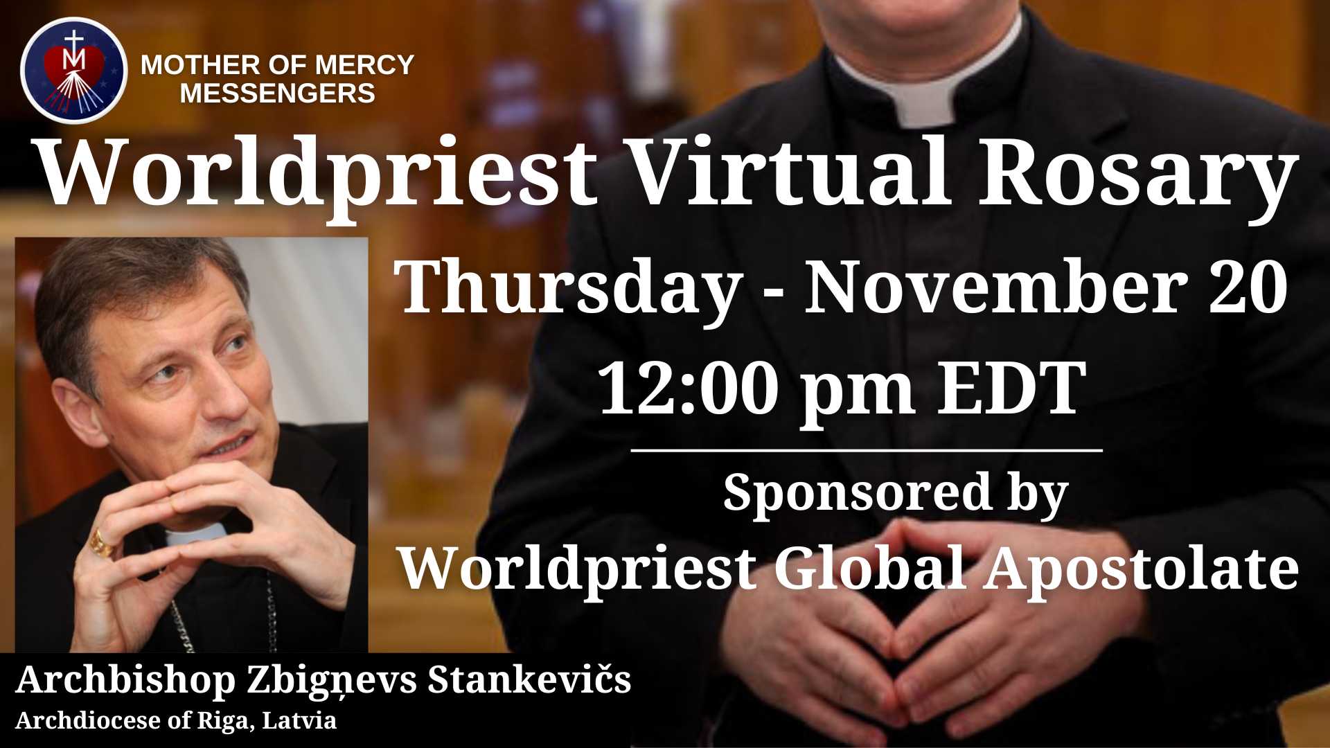 The Worldpriest Rosary starts soon. Hope you can make it. We are honored to pray the first decade of the Rosary with Archbishop Stankevics today.