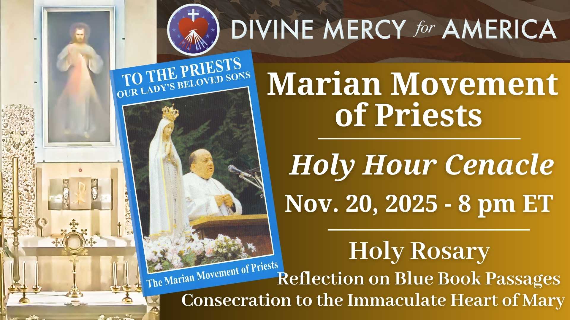 The cenacle will be recorded and available on the Divine Mercy for America YouTube and Rumble channels.