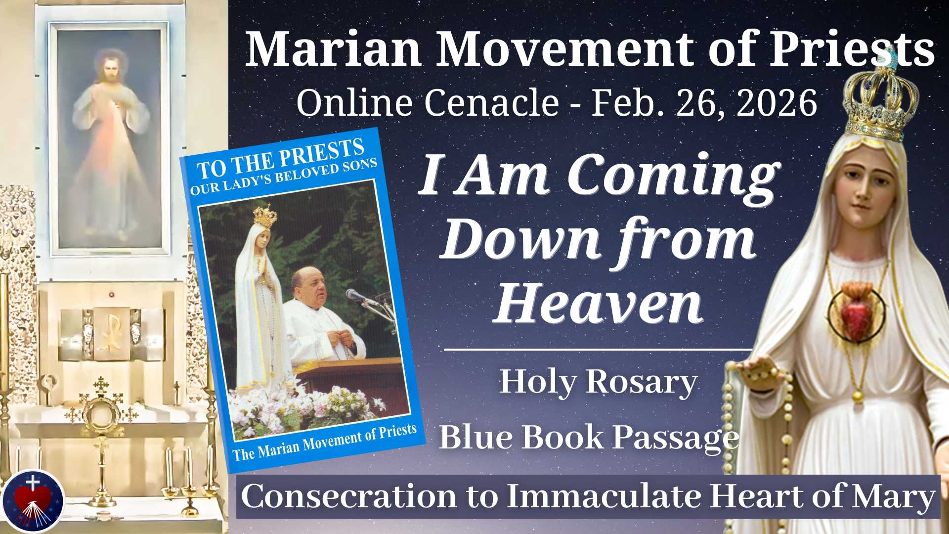 The cenacle will be recorded and available on the Divine Mercy for America YouTube and Rumble channels.