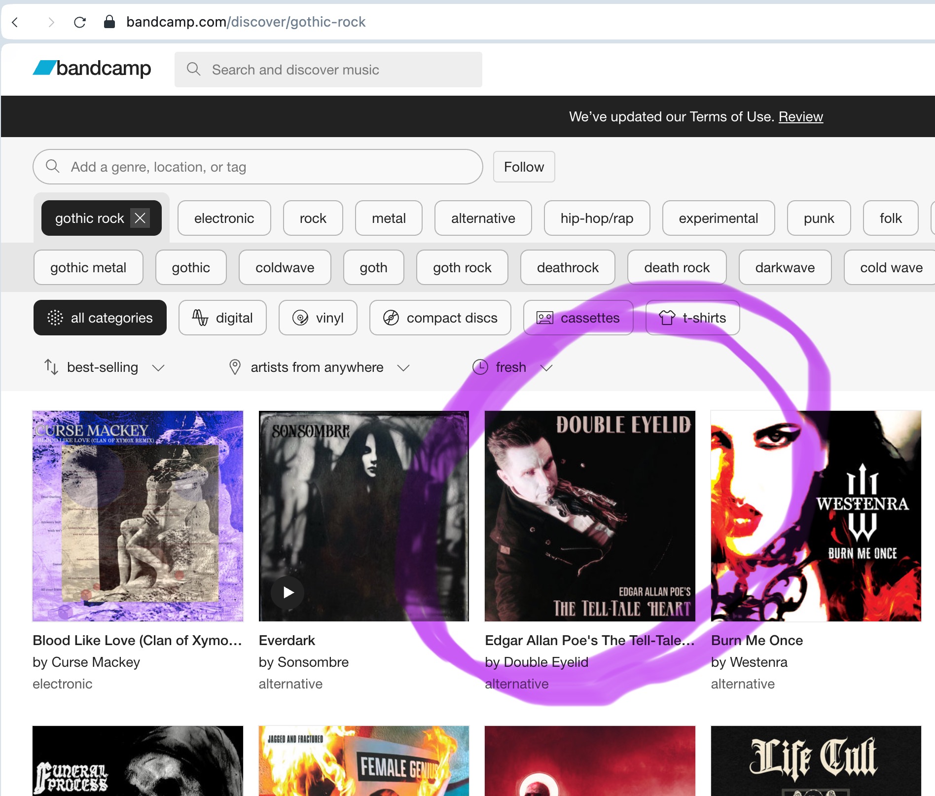 Some kind of exciting news this morning - was browsing around on Bandcamp's different charts and found out we're #3 on the 'gothic rock' chart - pretty cool for this weird little experiment.