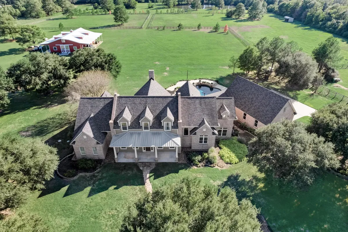 Private Retreats and Horse Facilities The expansive backyard offers a swimming pool, outdoor kitchen, wood-burning fireplace, and several covered loggias for entertaining. Adjacent to the main residence is a five-bedroom, three-bathroom staff house with a tack room, designed for equestrian staff or guests. The estate’s equestrian facilities include a newly painted 16-stall barn, complete with Equi Turf, auto waterers, rubber pavers, and a state-of-the-art equine spa. The Wordley Martin-built arena, surrounded by lush landscaping, provides the perfect space for training and relaxation.