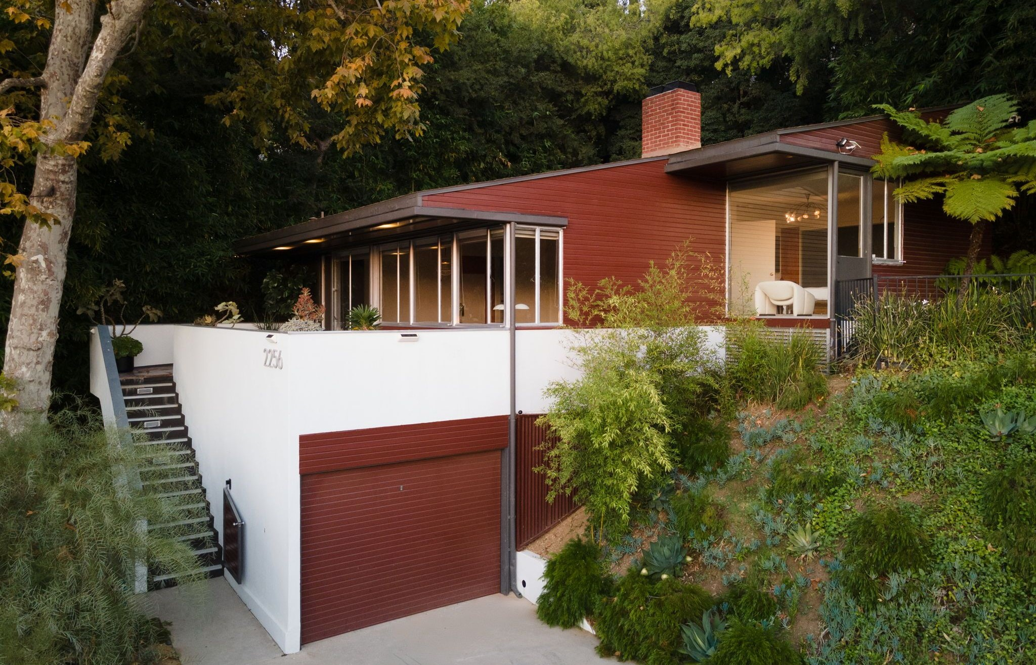 A Landmark in the Hollywood Hills Nestled on a sloping site, the Bonnet House has been designated as a Los Angeles Historic-Cultural Monument. The structure, built from redwood, features a unique angular design that mimics the incline of the terrain, offering spectacular canyon and city views. While Neutra is known for his flat-roof designs, this house stands out with its bold, geometric form.