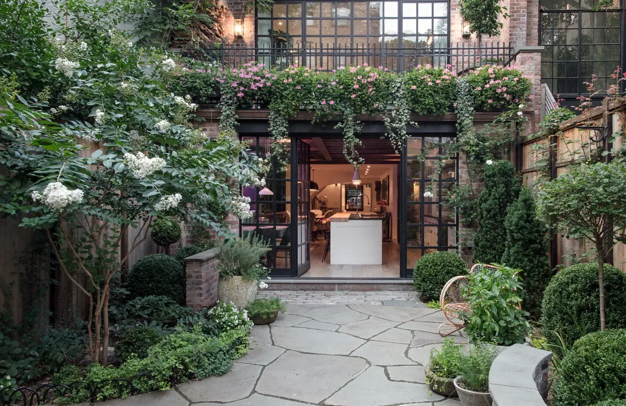 The Ideal Backyard for Urban Living The backyard, a true standout, includes mature trees transplanted from the Berkshires, creating an oasis right in the heart of Greenwich Village. This green space offers a rare, tranquil escape in the city.