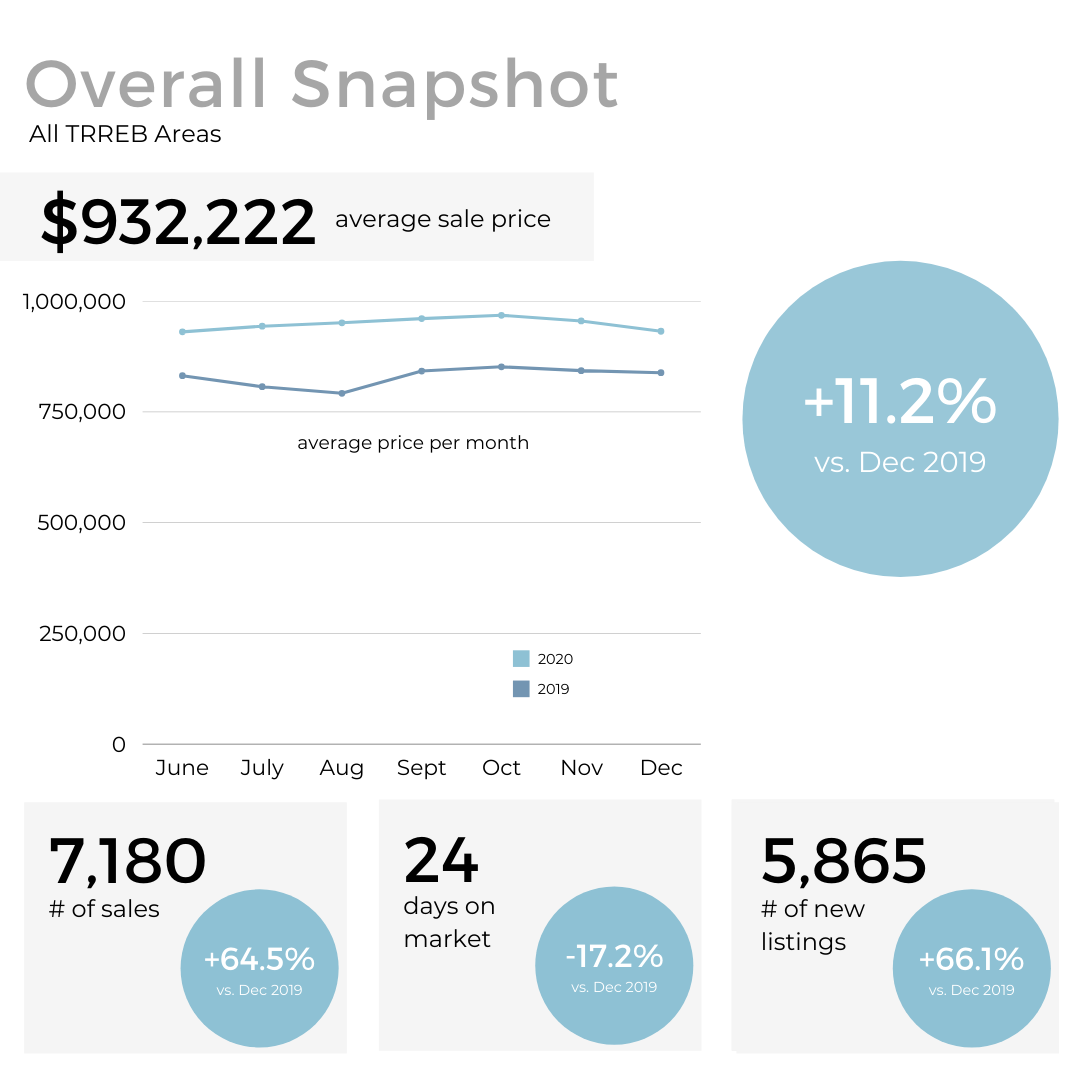 Happy New Year! 2020 was historic in many ways – and despite the challenges we all faced through a global pandemic, the Toronto Real Estate market showed resiliency, strength and continued demand. Watch this month’s Toronto Real Estate Market Update to find out how the market performed in December, and you will be amazed at the number! Alex also provides a recap of the real estate market as a whole over all of 2020. |