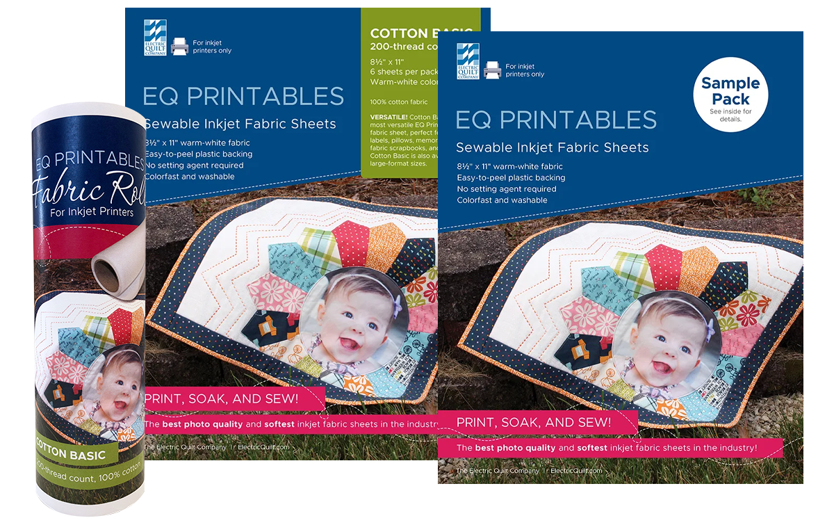 Friend, we have a special deal for you! | | | | | Save 20% on the best photo-quality and softest inkjet fabric sheets in the industry! | | | All it takes is 3 simple steps! | | 1. PRINT: Print onto the fabric using an inkjet printer. No special inks or printer settings required! Allow the ink to dry for about 15 minutes, then remove the fabric from the easy-to-peel plastic backing. | | | 2. SOAK: Soak the printed fabric sheet in room-temperature water for 10 minutes to remove the excess printer ink. Carefully rinse until the water runs clear. This process sets the ink without losing any color or quality! | | | 3. SEW: Lay the fabric flat to dry, which may take a couple of hours. When dry, the fabric is ready to sew into your project! Feel free to iron out any wrinkles if needed. | | Create heirlooms that will be treasured for years! | | Use old hand-written letters, a child’s artwork, family photos, or any cherished item you’d like to feature in your next project! | | "I just used EQ Printables Cotton Basic for the first time, and it is fantastic. I have had problems with competitors’ products and was prepared for a long wrestling match with my printer. But no problem at all going through the printer, and the backing separated easily. Smooth sailing and no wrestling!" | | | | | 25% off for EQ Members!An EQ Membership includes an extra 5% savings all year long! That means EQ Members save 25% on EQ Printables inkjet fabric sheets during the sale. Remember to use the promo code! Not an EQ Member yet? Join now and the extra 5% will automatically apply to the other items once the EQ Membership product is in your cart! Note: Extra 5% discount does not apply to EQ8. |