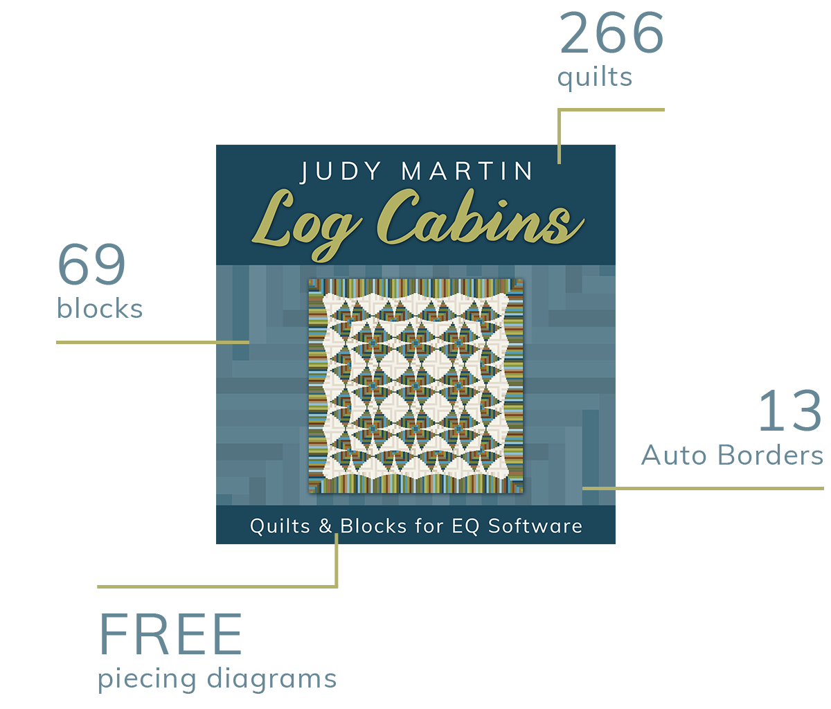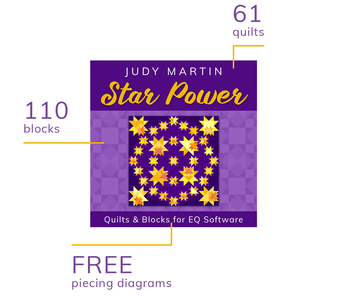 Friend, we have a special deal for you! | | | | Add Judy Martin's beautiful quilts to EQ! Both the Star Power and Log Cabins add-ons are on sale and include dozens of Judy's most beloved quilt designs! | | | | | The Star Power add-on gives you stunning designs from Judy Martin’s out-of-print book, Knockout Blocks and Sampler Quilts. These spectacular stars can be used as Judy designed them, or changed to make your own! | | | | | | | Inspired by Judy Martin’s book, Extraordinary Log Cabin Quilts, this add-on is perfect for log cabin lovers! Plus, you can add Judy’s unique border designs to any of your quilts with just one click using the Auto Borders feature in EQ8! | | | | | | | | 25% off for EQ Members!An EQ Membership includes an extra 5% savings all year long! That means EQ Members save 25% on Star Power and Log Cabins during the sale. Remember to use the promo code! Not an EQ Member yet? Join now and the extra 5% will automatically apply to the other items once the EQ Membership product is in your cart! Note: Extra 5% discount does not apply to EQ8. |