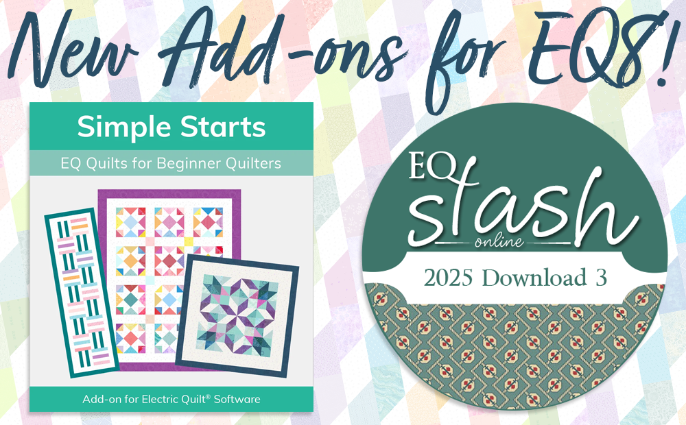 Save on New Add-ons (and So Much More!) It's been a big month here at EQ headquarters and we're excited to share our two newest EQ8 add-ons with you all! Simple Starts is packed full of easy-to-piece quilts that are great for beginners, and fun to sew for seasoned quilters looking for a unique project. For our fabric lovers, the newest Stash add-on is here with over 1,100 new fabrics from Tilda, Riley Blake, Moda, and more! And the BEST part? Our Black Friday sale starts now and you can save 25% on these new add-ons with code BLACKFRIDAY! |