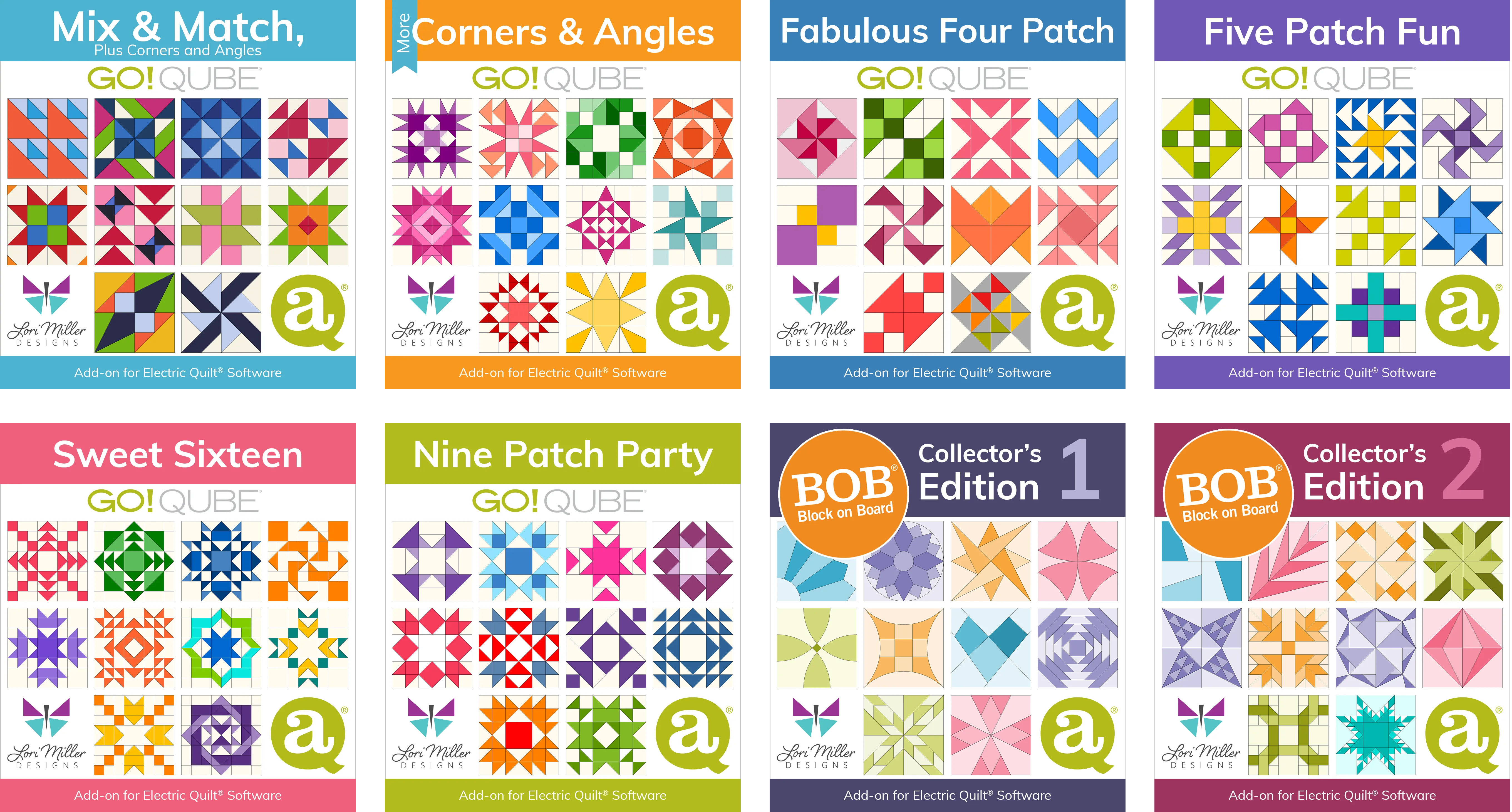 AccuQuiltt®!Enjoy the perfect mix of creativity and precision with AccuQuilt add-ons for EQ8 software! Use the products below to add hundreds of new blocks! Design quilts, audition fabrics, then use your AccuQuilt GO! Qubes or BOBs to construct the blocks! Shop AccuQuilt add-ons > |