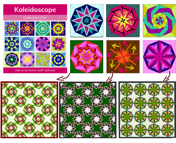 Kaleidoscope Collections!If you love to foundation paper piece, these blocks are for you! Each vibrant collection adds over 500 kaleidoscope blocks to the EQ8 Block Library. Mix and match the blocks for amazing quilt designs. Print the foundation paper piecing patterns at any size and start sewing! Shop the Kaleidoscope Collections > |