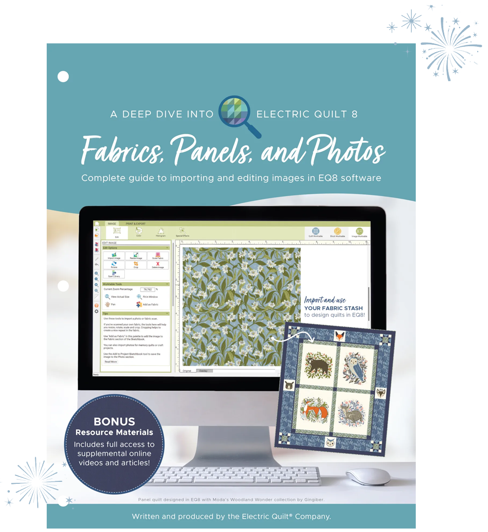 Make this the year you personalize your quilts! This booklet teaches you everything you need to import your own fabrics and photos into EQ8. Whether you’re creating a t-shirt quilt, a panel quilt, or any design using your favorite fabrics, this guide is for you. Plus, enjoy bonus videos included with your purchase! Shop EQ8 Deep Dive: Fabrics, Panels, and Photos >
