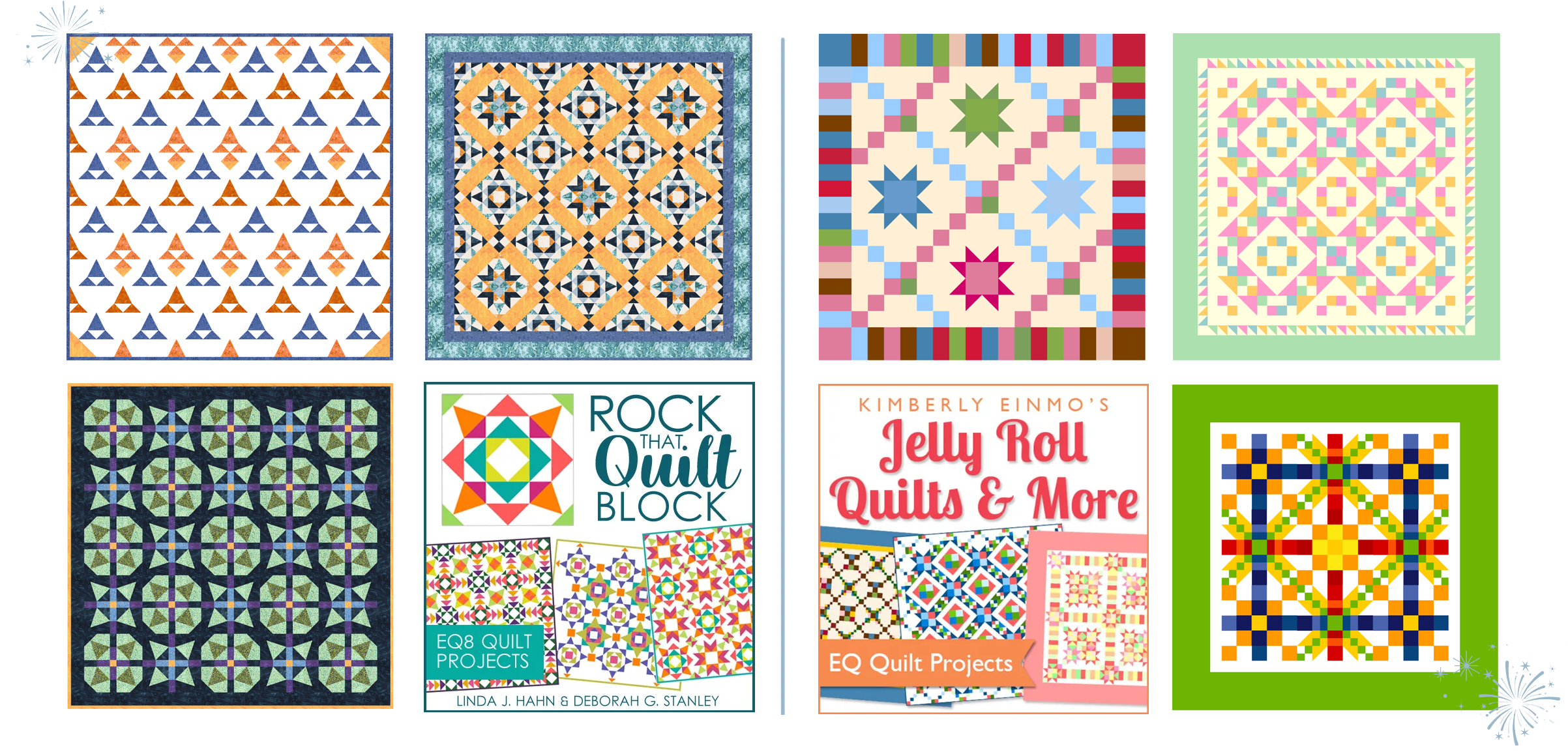 Many more add-ons with quilts! Make 2026 your most creative quilting year yet! Explore two amazing EQ8 add-ons based on bestselling books, Rock That Quilt Block by Linda J. Hahn & Deborah G. Stanley and Jelly Roll Quilts & More by Kimberly Einmo. And that’s just the beginning, there’s so much more to explore! Shop all quilt add-ons > |