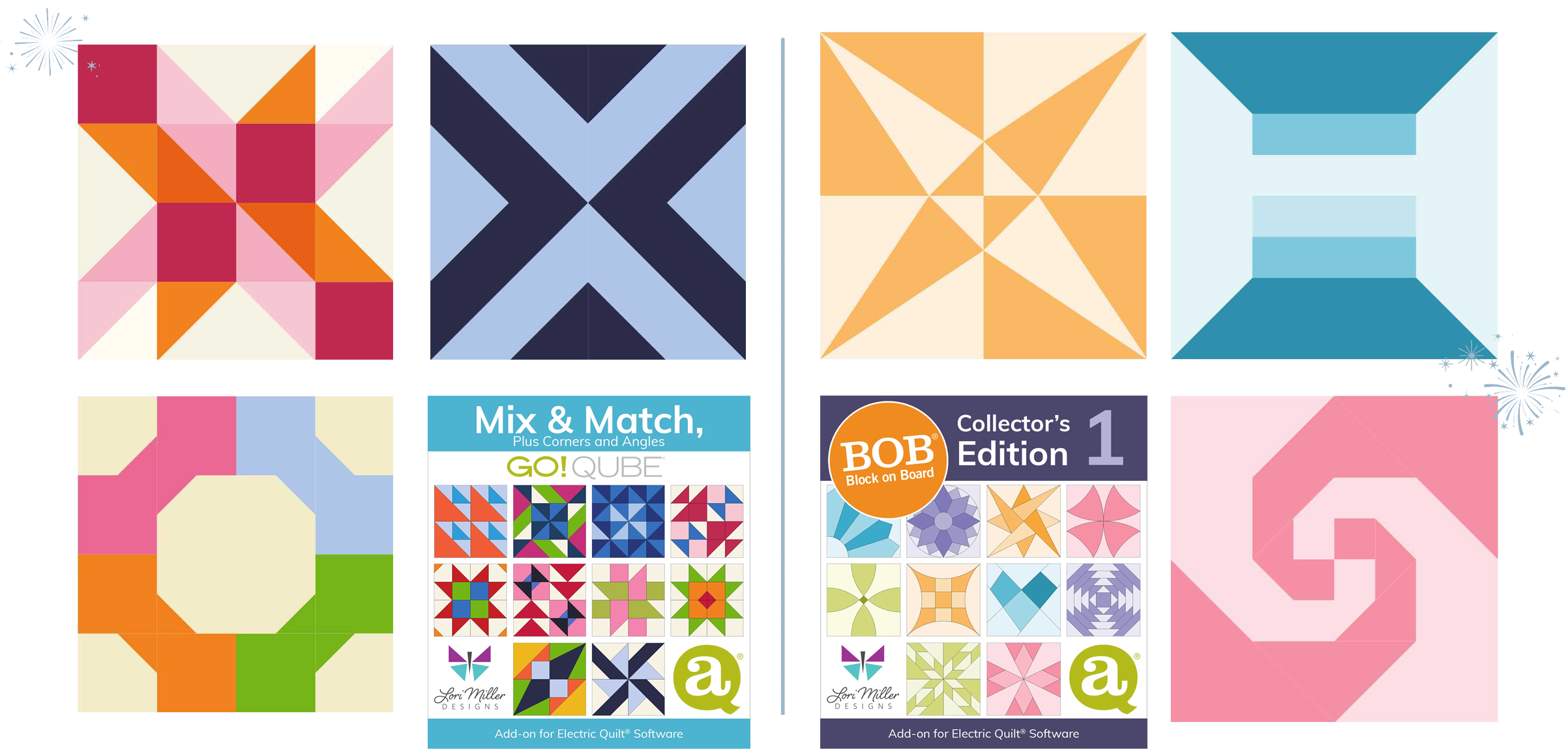 AccuQuilt® add-ons!Add hundreds of new blocks to EQ8 knowing they can all be cut with any size GO! Qube or BOBs! Pair EQ8 with AccuQuilt for precision and speed. Start 2026 with tools that make every quilt easier, faster, and more fun! Shop AccuQuilt add-ons > |