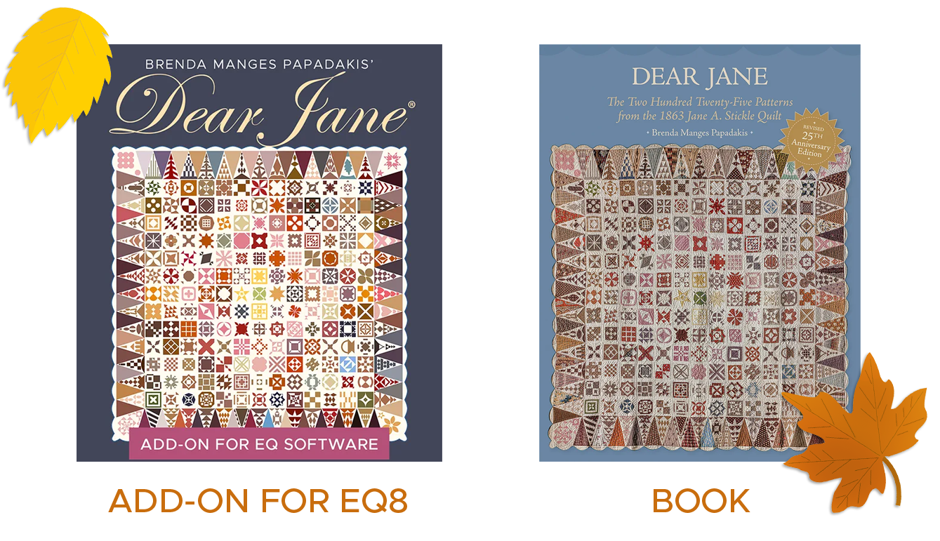 Offer expires tonight at midnight, ET! | | | Love the original Dear Jane quilt? Or want to make it your own way? The Dear Jane Add-on for EQ8 & Dear Jane book will guide you on either path! Only a few hours left to save 25% on Dear Jane products! | |