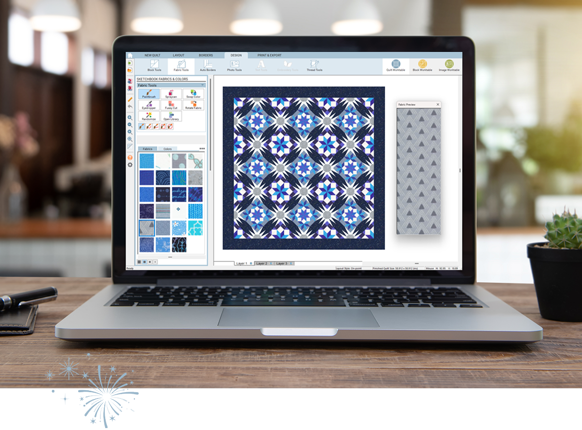 Tired of wasting fabric on ideas that don’t quite work? EQ8 lets you design your entire quilt on screen! Preview fabrics, block arrangements, and borders, all before touching your rotary cutter. Watch a demo >
