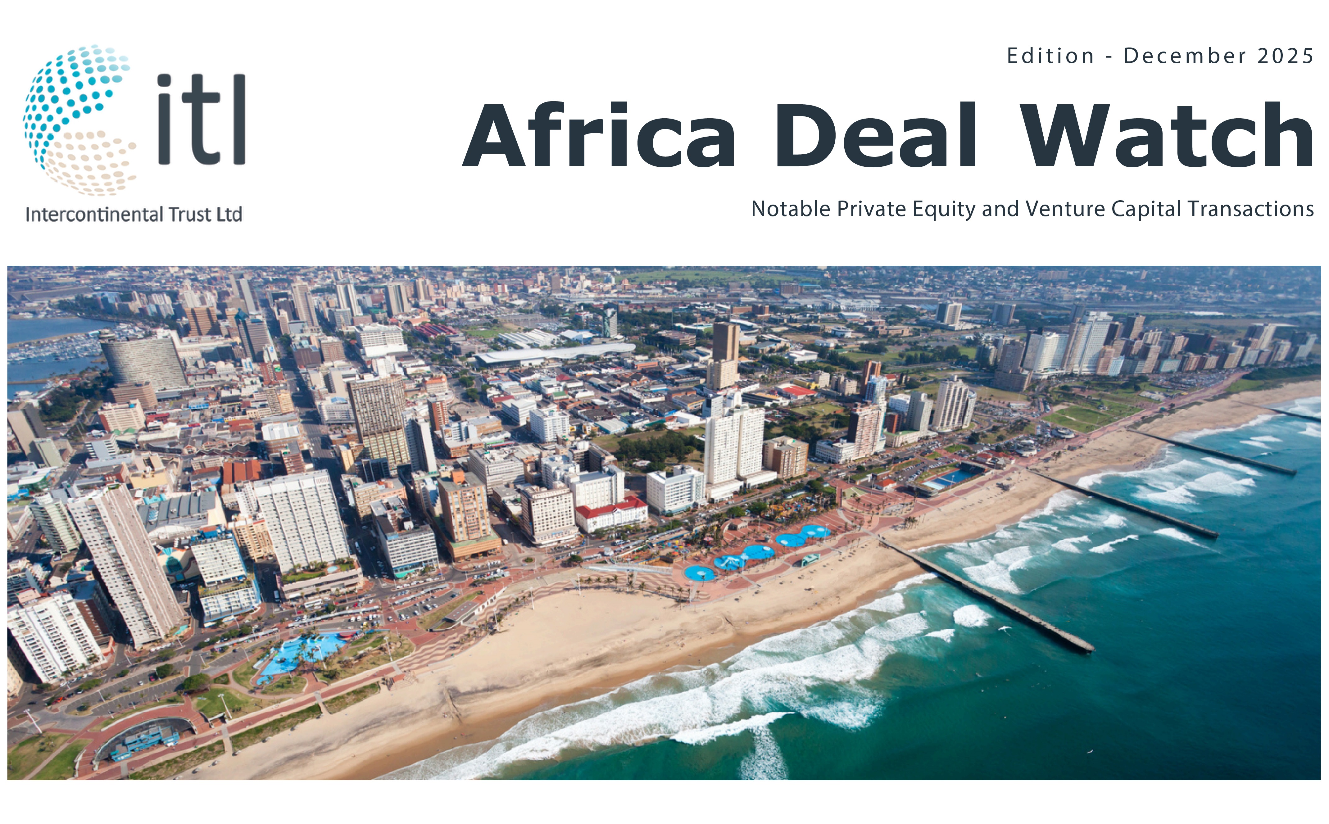 | We are pleased to share the December 2025 edition of Africa Deal Watch, ITL’s monthly roundup of notable private equity and venture capital transactions across the African continent, produced in collaboration with Africa Private Equity News. This edition reflects continued momentum across sectors including manufacturing, agriculture, healthcare, energy, and financial services, highlighting the depth and resilience of Africa’s investment landscape. December highlights include: • Helios Investment Partners’ agreement to acquire Frigoglass Group’s Nigerian glass business for up to €100 million, marking a significant transaction in the industrial and manufacturing space. • Sahel Capital’s additional financing to Benin-based MM LEKKER, reinforcing its commitment to strengthening agribusiness and food value chains in West Africa. Alongside these, the edition covers a range of transactions spanning Southern, West, North, and East Africa, from healthcare consolidation to renewable energy and financial services. | | | Your Data Privacy, Our Concern As you are aware, we hold your contact details on our database and have been sending you regular newsletters and updates about the latest developments in the Mauritius financial landscape and other areas of interest. Since the introduction of the new data protection regulations (EU GDPR & the Mauritius Data Protection Act 2017), we now require your consent to hold your personal data. Please click here to confirm that you still want to hear from us and get the latest news about the Mauritius International Financial Centre. Should you wish to opt out of our future e-mail communications, please click here to stop receiving correspondence from ITL. Alternatively, you may use the unsubscribe button at the bottom of all our communications or send us an e-mail at unews@intercontinentaltrust.com Data security and protection is of prime importance to us and we invite you to read our privacy notice which provides information about how we manage and process your personal information. We are only a phone call or an e-mail away. If you have any comments, questions or concerns about any of the information in our privacy notice, or any issues relating to the processing of personal data by ITL, please contact your regular contact person at ITL or write to us on dpo@intercontinentaltrust.com | | DISCLAIMER The information in this e-newsletter was prepared by Intercontinental Trust Limited to provide potential clients with a broad overview of the opportunities available in Mauritius. While all reasonable care has been taken in the preparation of this e-newsletter, Intercontinental Trust Limited accepts no responsibility for any errors it may contain, whether caused by negligence or otherwise, or for any loss, however caused, sustained by any person that relies on it. Readers are advised to consult with appropriate, qualified professional advisors before taking action. Intercontinental Trust Limited will be pleased to discuss any specific issues. |
