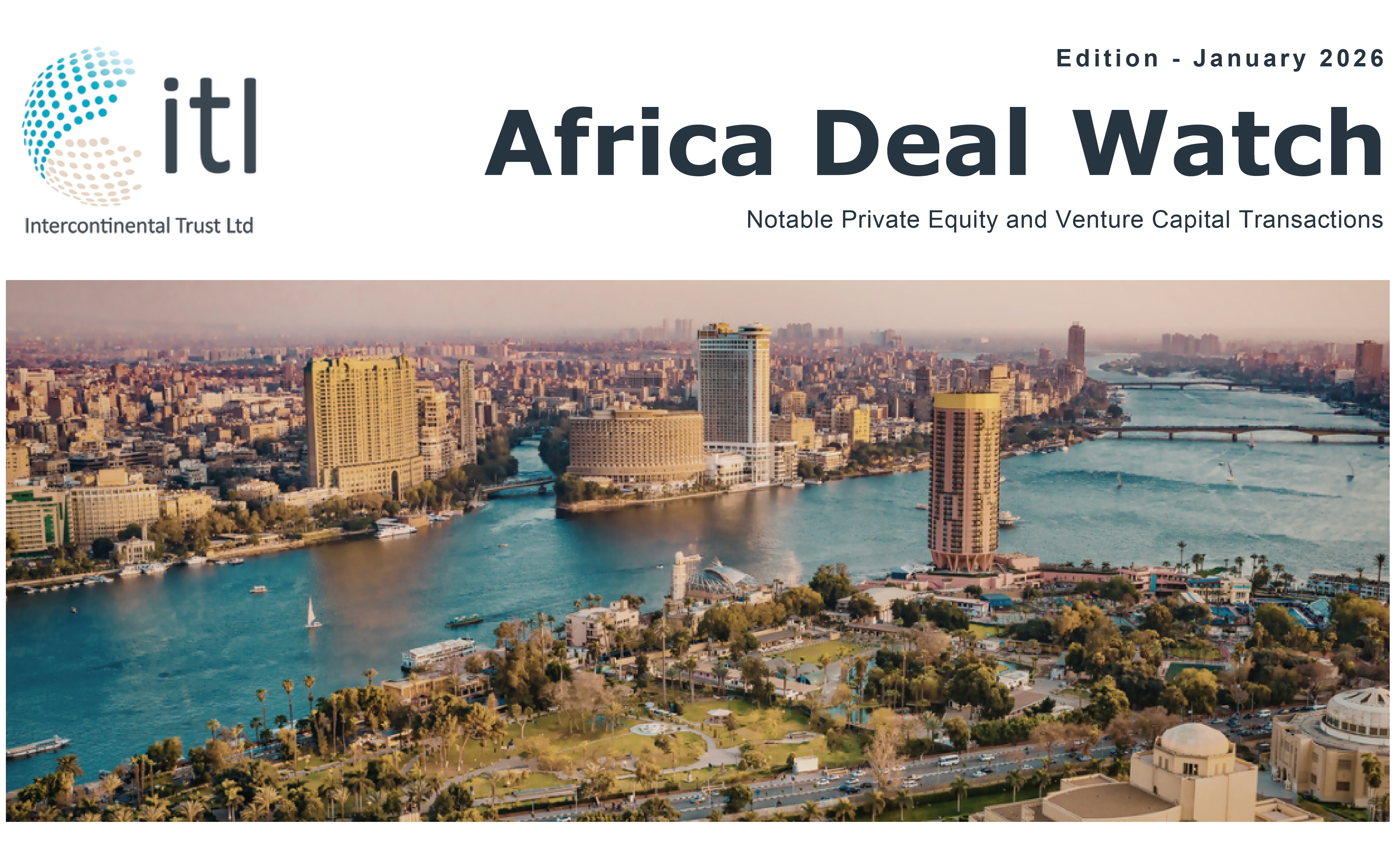 | We are pleased to share the January 2026 edition of Africa Deal Watch, featuring notable private equity and venture capital transactions across the continent. This edition highlights Adenia Partners’ acquisition of a majority stake in Parkville Pharmaceuticals, underscoring sustained investment appetite in Africa’s healthcare and pharmaceutical sectors. It also features Sahel Capital’s investment in Delifrost Caterers, a Nigerian cold-chain distribution platform, reflecting the continued expansion of agribusiness and food supply infrastructure across West Africa. Additional transactions covered this month span logistics, retail, fintech, renewable energy, and life sciences, illustrating the breadth and resilience of deal activity across African markets. | | | Your Data Privacy, Our Concern As you are aware, we hold your contact details on our database and have been sending you regular newsletters and updates about the latest developments in the Mauritius financial landscape and other areas of interest. Since the introduction of the new data protection regulations (EU GDPR & the Mauritius Data Protection Act 2017), we now require your consent to hold your personal data. Please click here to confirm that you still want to hear from us and get the latest news about the Mauritius International Financial Centre. Should you wish to opt out of our future e-mail communications, please click here to stop receiving correspondence from ITL. Alternatively, you may use the unsubscribe button at the bottom of all our communications or send us an e-mail at unews@intercontinentaltrust.com Data security and protection is of prime importance to us and we invite you to read our privacy notice which provides information about how we manage and process your personal information. We are only a phone call or an e-mail away. If you have any comments, questions or concerns about any of the information in our privacy notice, or any issues relating to the processing of personal data by ITL, please contact your regular contact person at ITL or write to us on dpo@intercontinentaltrust.com | | DISCLAIMER The information in this e-newsletter was prepared by Intercontinental Trust Limited to provide potential clients with a broad overview of the opportunities available in Mauritius. While all reasonable care has been taken in the preparation of this e-newsletter, Intercontinental Trust Limited accepts no responsibility for any errors it may contain, whether caused by negligence or otherwise, or for any loss, however caused, sustained by any person that relies on it. Readers are advised to consult with appropriate, qualified professional advisors before taking action. Intercontinental Trust Limited will be pleased to discuss any specific issues. |