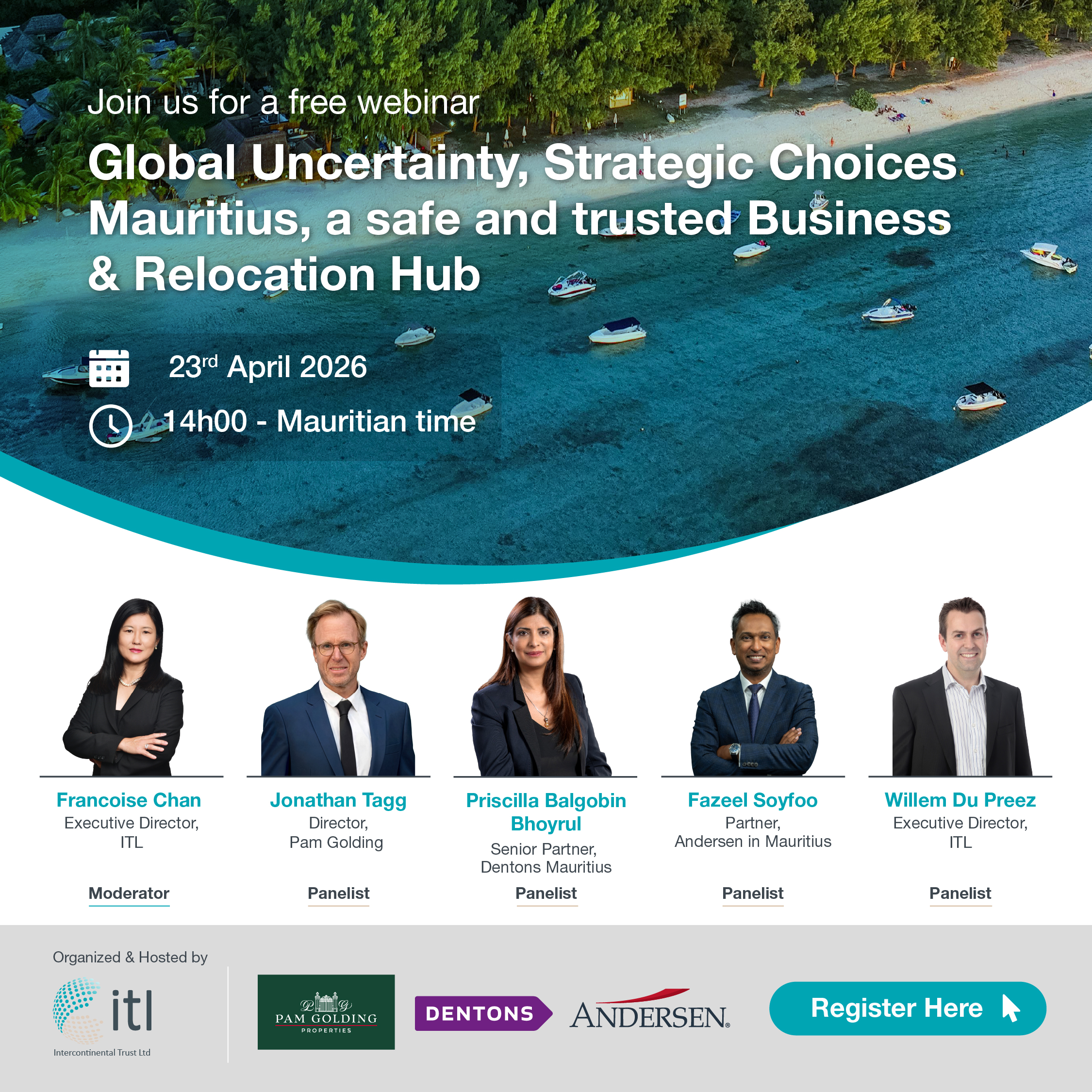 The information in this newsletter was prepared by Intercontinental Trust Limited to provide potential clients with updates on Mauritius. While all reasonable care has been taken in the preparation of this newsletter, Intercontinental Trust Limited accepts no responsibility for any errors it may contain, whether caused by negligence or otherwise, or for any loss, however caused, sustained by any person who relies on it.