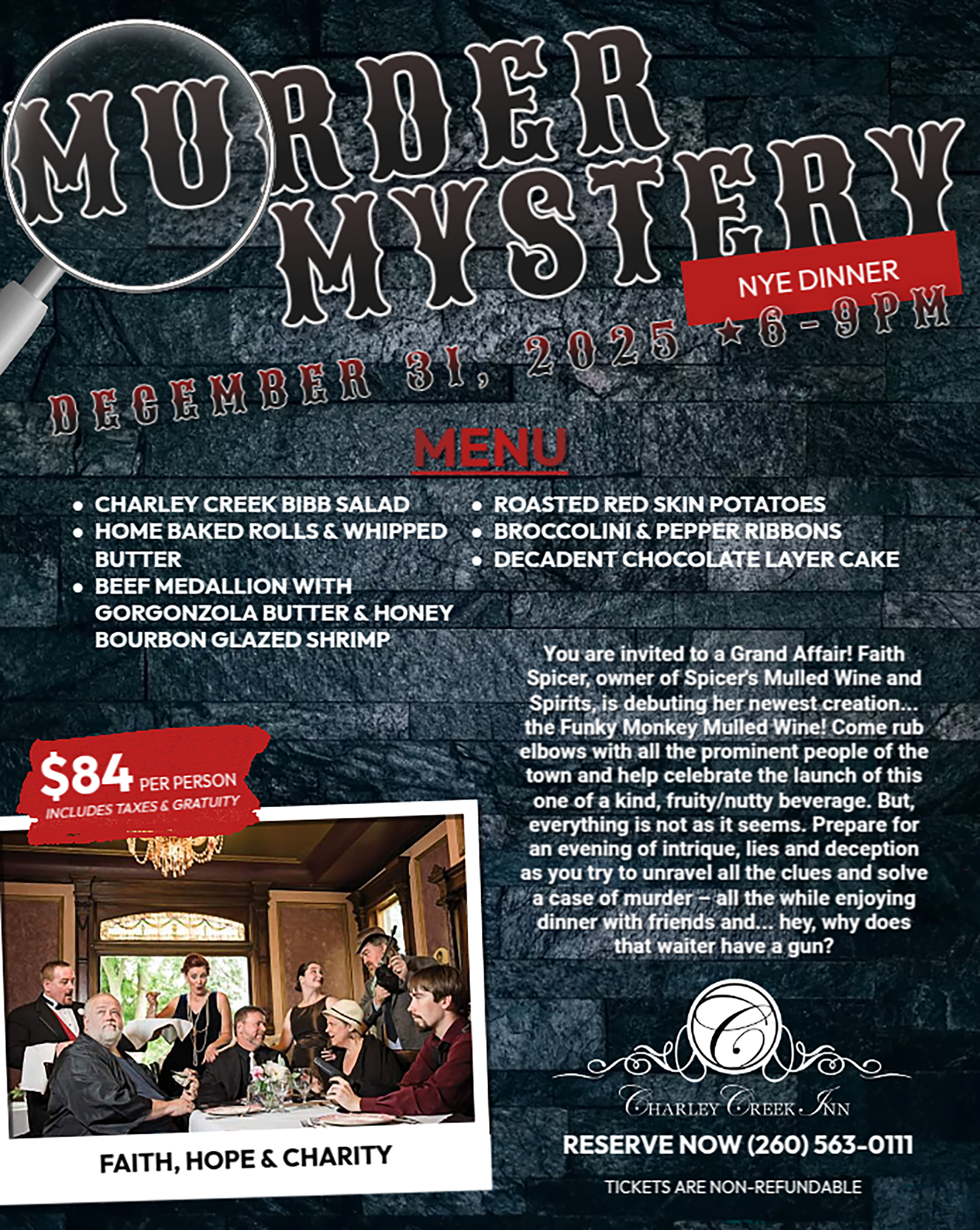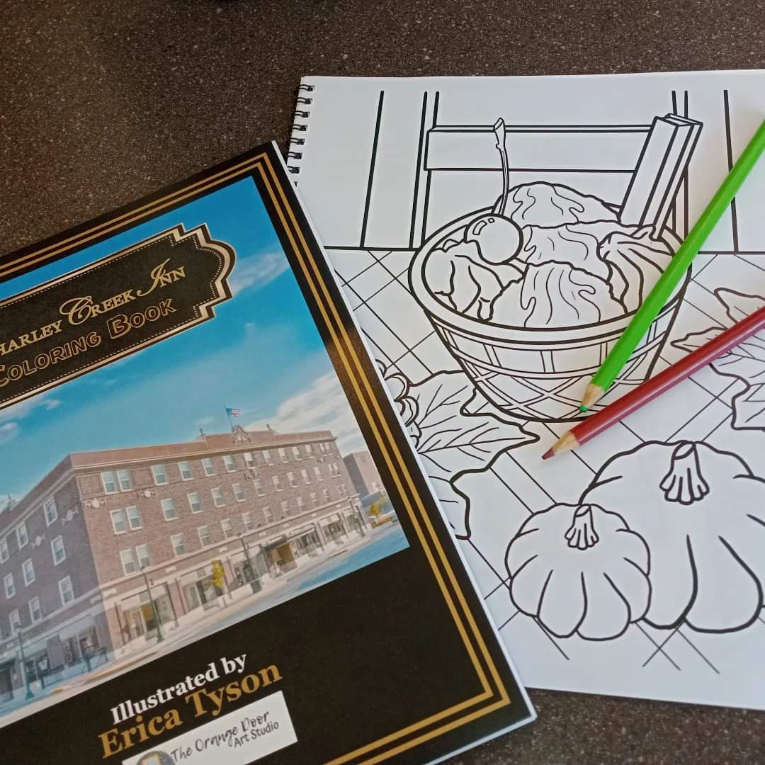 Discover our exclusive Charley Creek Inn Coloring Book, beautifully illustrated by Erica Tyson of The Orange Door Art Studio. Featuring charming, Inn-inspired scenes, it’s a relaxing, screen-free gift for all ages—perfect for cozy winter evenings, stocking stuffers, or pairing with colored pencils for an extra-special surprise. Available now at the Ice Cream & Candy Shoppe and at Visit Wabash County. |