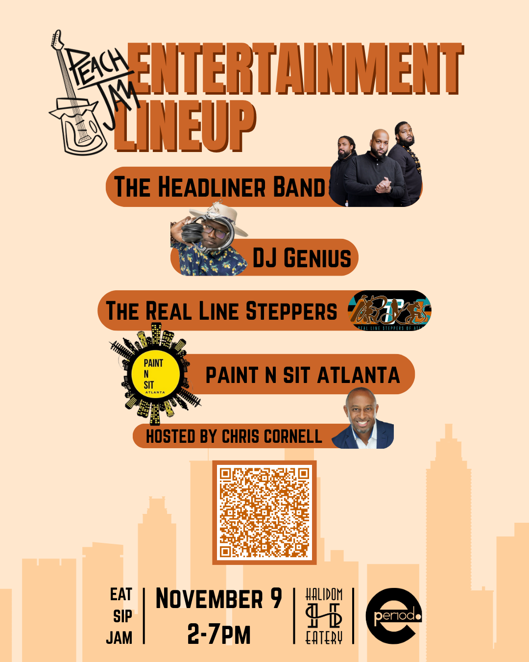 Atlanta, the vibe is set — it’s time for Peach Jam Festival at Halidom Eatery! Join us for a full day of music, food, family fun, and community connection.