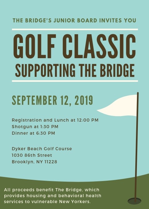 | The Bridge Junior Board invites you to attend this year's Golf Classic on September 12th at Dyker Beach Golf Course in Brooklyn. Tickets are available for purchase here!