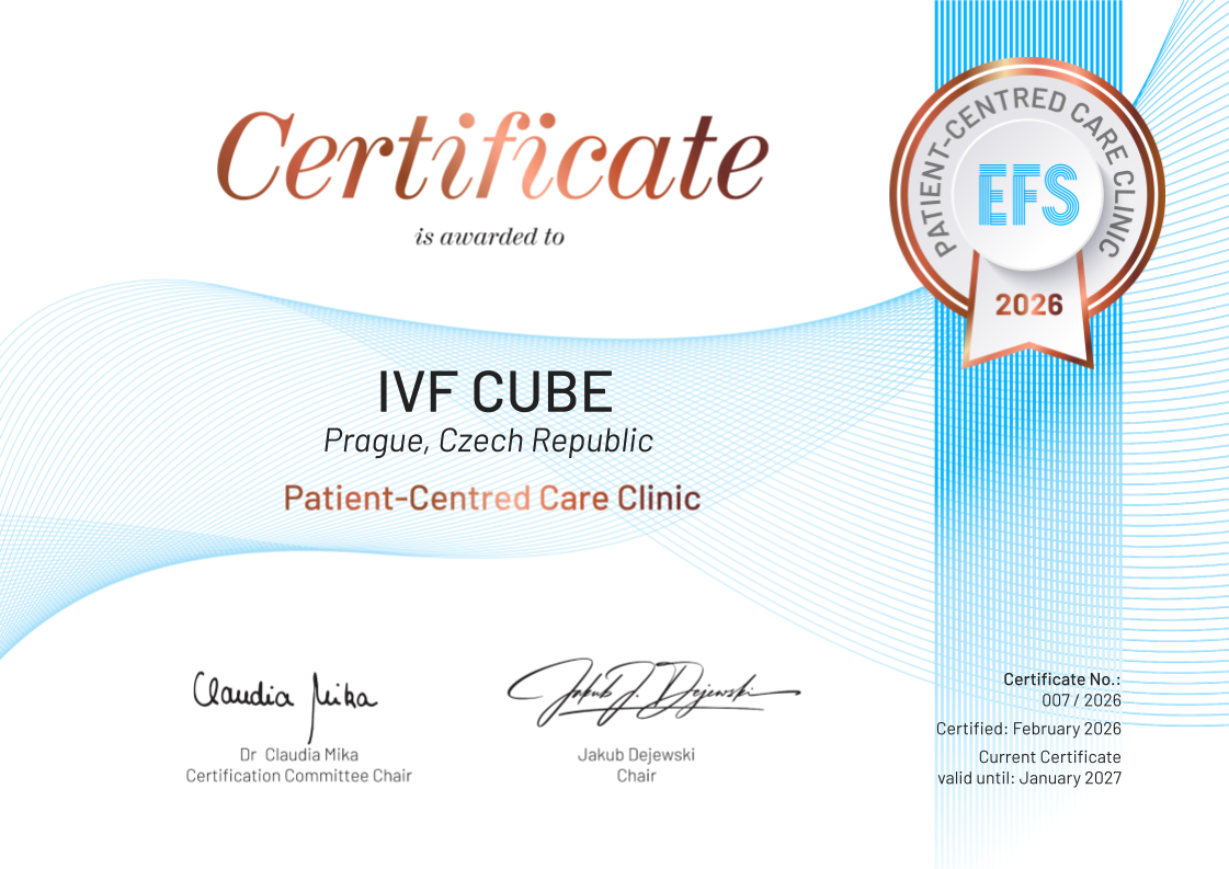We’re excited to share some great news that could make your fertility journey a little easier: IVF Cube has just been awarded the Patient-Centred Care Clinic Certificate by the European Fertility Society (EFS).