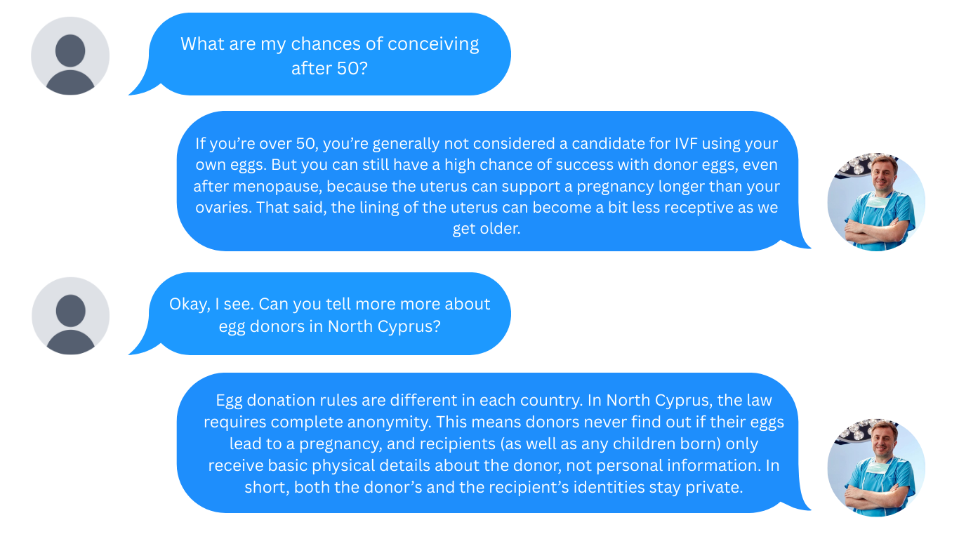 The article offers clear, evidence-based guidance on: Chances of conceiving after 50 Risks and potential complications Required tests, consultations, and documents for donor recipients How egg donation works in North Cyprus Success rates for IVF with donor eggs
