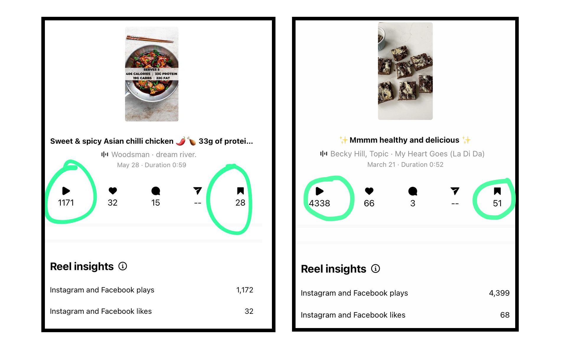 Within just 24 hours of posting the Sweet and spicy Asian chilli chicken recipe, UK-based personal trainer Emma had 1171 views and 28 saves (check out the picture - below left).