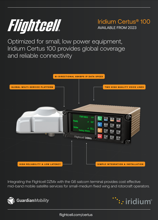 Guardian Mobility & Flightcell partner to provide cost-effective Iridium Certus 100 satcom & cellular aviation solution