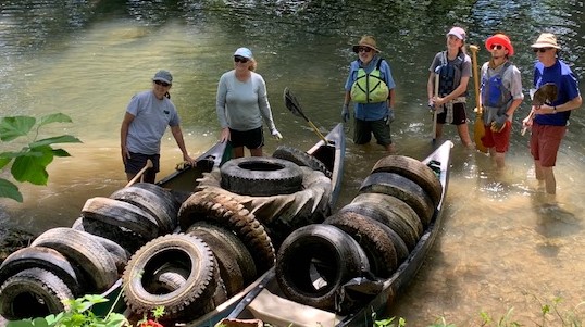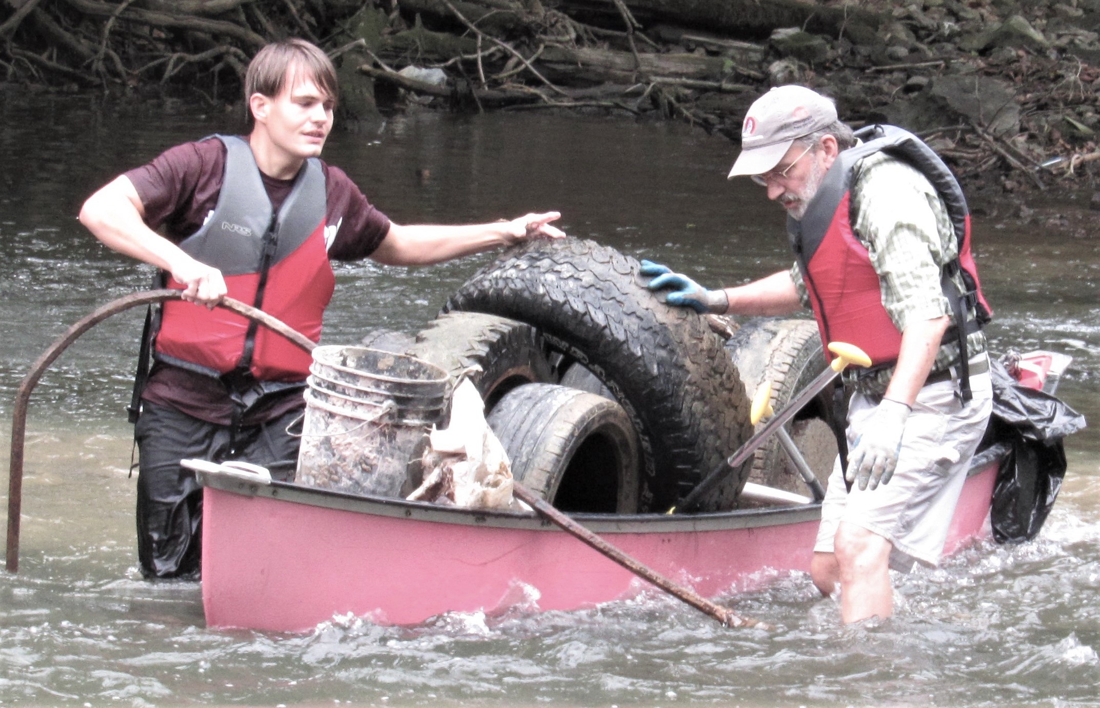 106 volunteers (13 teams on 13 different stretches of river) cleaned 21.9 miles of streams (21.4 miles of the Middle River and 0.5 miles of Lewis Creek) pulled out 153 tires, including 141 car/SUV/small truck tires, 8 large truck tires, and 4 tractor tires amassed 1.37 tons of an assortment of trash (that's 2740 lbs.) in one 20 cubic yard dumpster, including: a boat (yeah, you read that right), a stove, a space heater, plastic silage wrap, misc. furniture and car parts, pipe, misc. farm supplies, a boat anchor, a hunting blind and other miscellaneous items