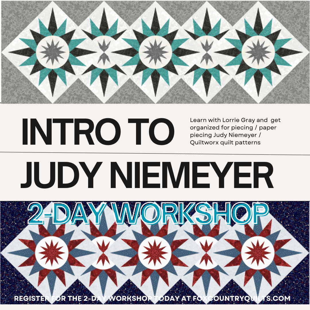 Do Judy Niemeyer quilts leave you inspired and intimidated at the same time? In this workshop, we’ll take away the intimidation factor with a step-by-step approach to one of Judy’s beginner friendly patterns in a laid-back, stress-free environment. We’ll start by talking about to read a Quiltworx pattern. Learn to cut and organize your papers and fabric to make paper piecing a breeze. Assemble the units with Judy’s easy curved-piecing technique. You’ll have lots of practice in basic paper piecing techniques and be well on your way to completing a small wall hanging/table runner. |