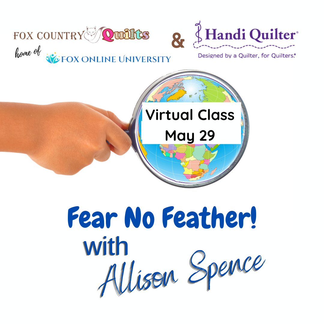 Thank you so much for signing up for Fox Country Quilts' Handi Quilter Virtual LIVE Event with Allison Spence! We are so thrill to be sharing with you great tips on quilting feathers!