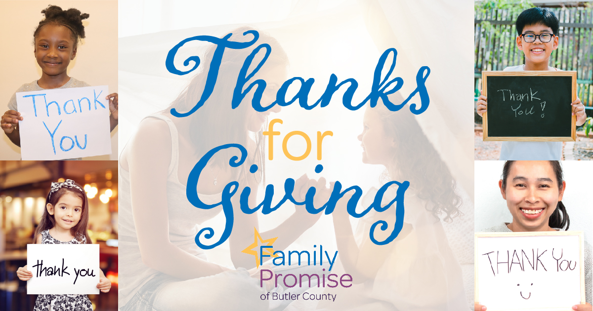 Dear Friends,  It is that time of the year when we all give thanks to those that matter most in our lives. The Family Promise of Butler County Staff and Board of Directors wish to express their deepest gratitude to YOU, our biggest supporters.  FPBC’s mission of ensuring all kids in Butler County have a place to call home would not be possible without you and we do not take that for granted. Each year in Butler County, over 1,000 children experience homelessness with their families. Because of you, FPBC was, to date, able to help provide shelter, meals, and services to 38 families, consisting of 56 adults and 78 children.  One of the families served during 2022 lived in their car for 2 months before finding FPBC. Tracy, along with her son, and husband, Jonah, entered our shelter earlier this year. Jonah was involved in an accident where he was hit by a drunk driver. He not only lost his car, but his injuries were life-threatening. Jonah eventually recovered but sustained significant disabilities and is now unable to work. While under FPBC’s care, Tracy was able to obtain employment and Jonah completed his social security disability claim. Due to becoming financially stable once again, the family was able to obtain a 2-bedroom apartment close to Tracy’s job and Jonah cares for their little kindergartner after school. |