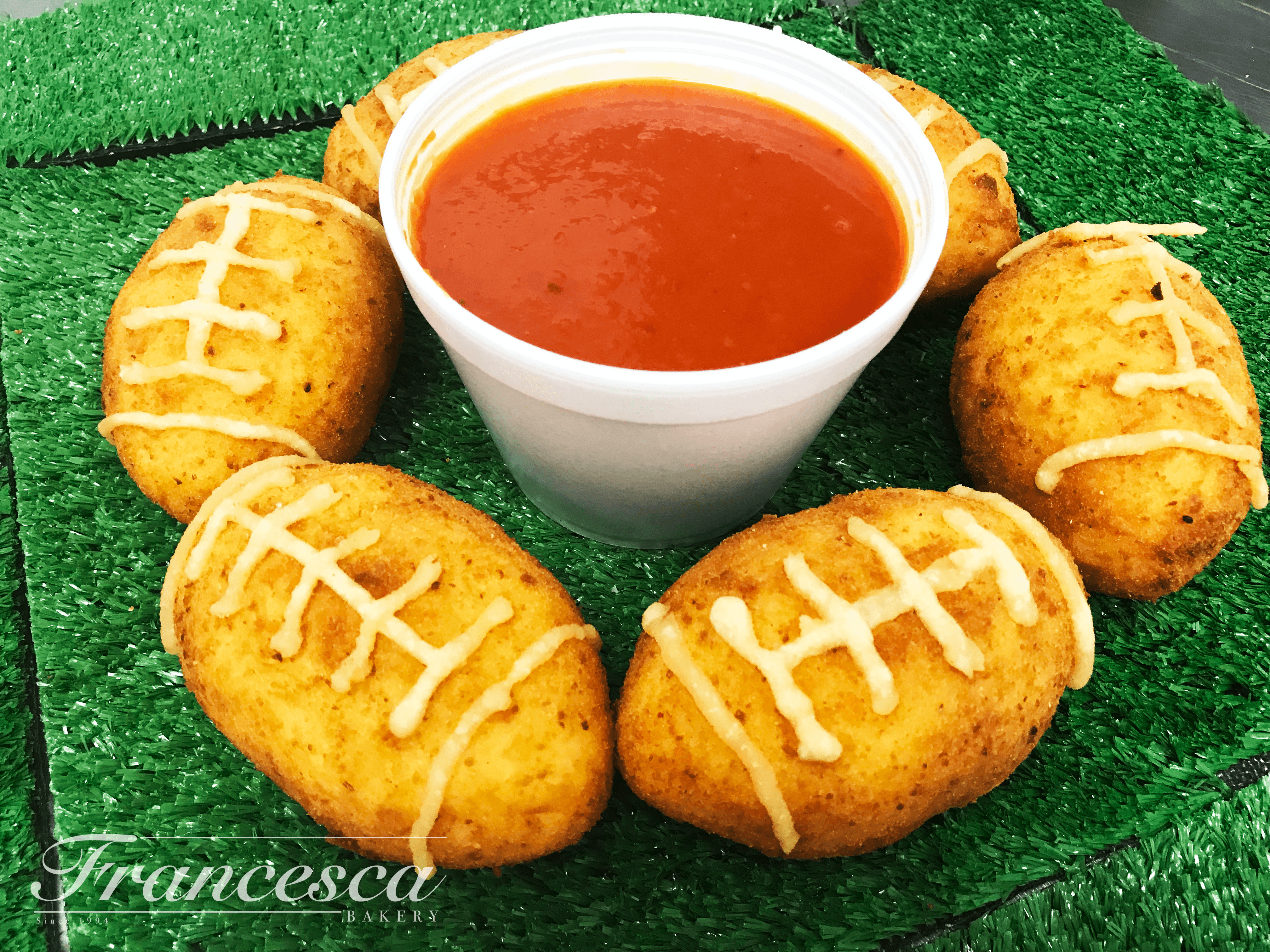 | | Our famous football arancini are back this season! Make your weekend festivities even more memorable with these hand-crafted meat or cheese-filled rice (foot)balls! A sure hit for the whole group! | | |