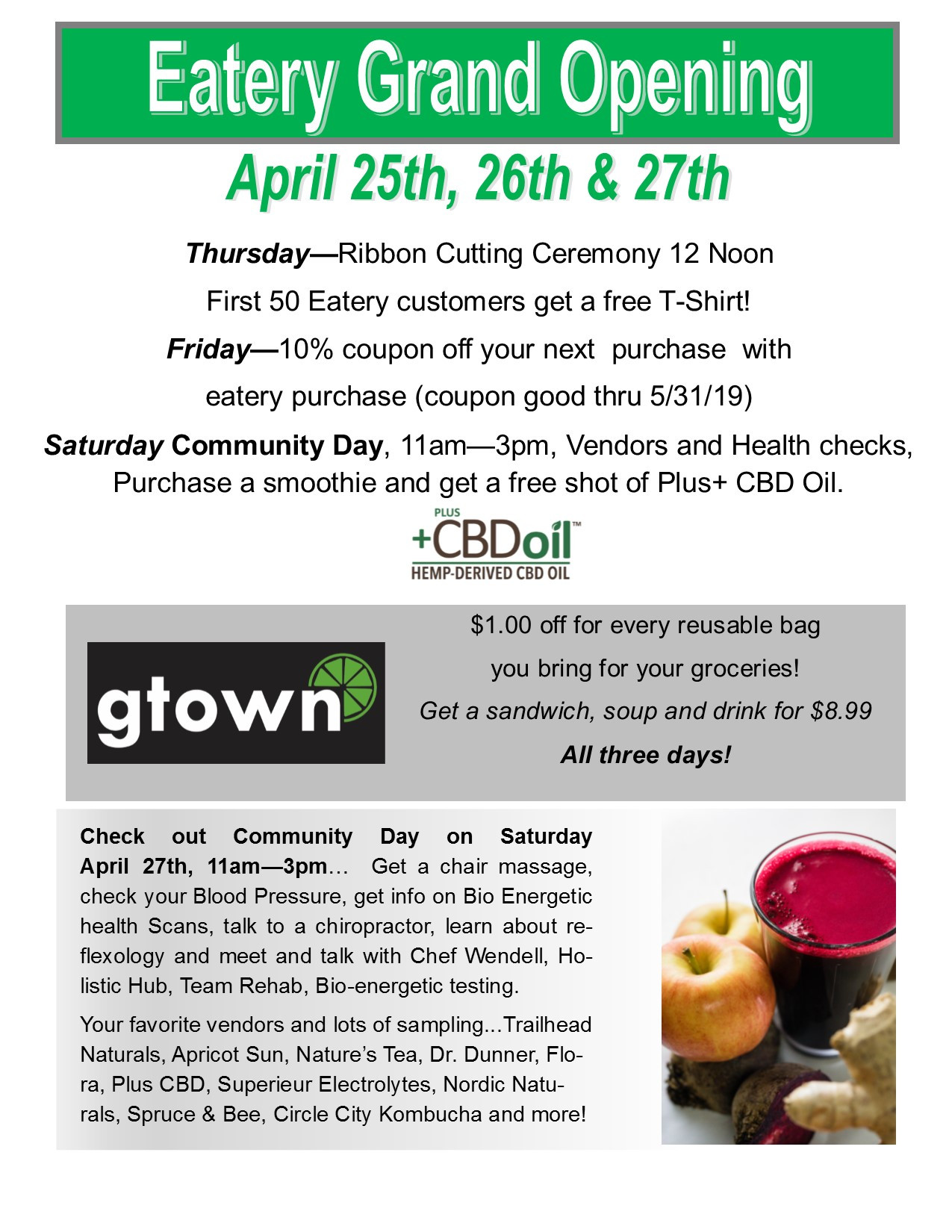 Subject: Eatery Grand Opening!
