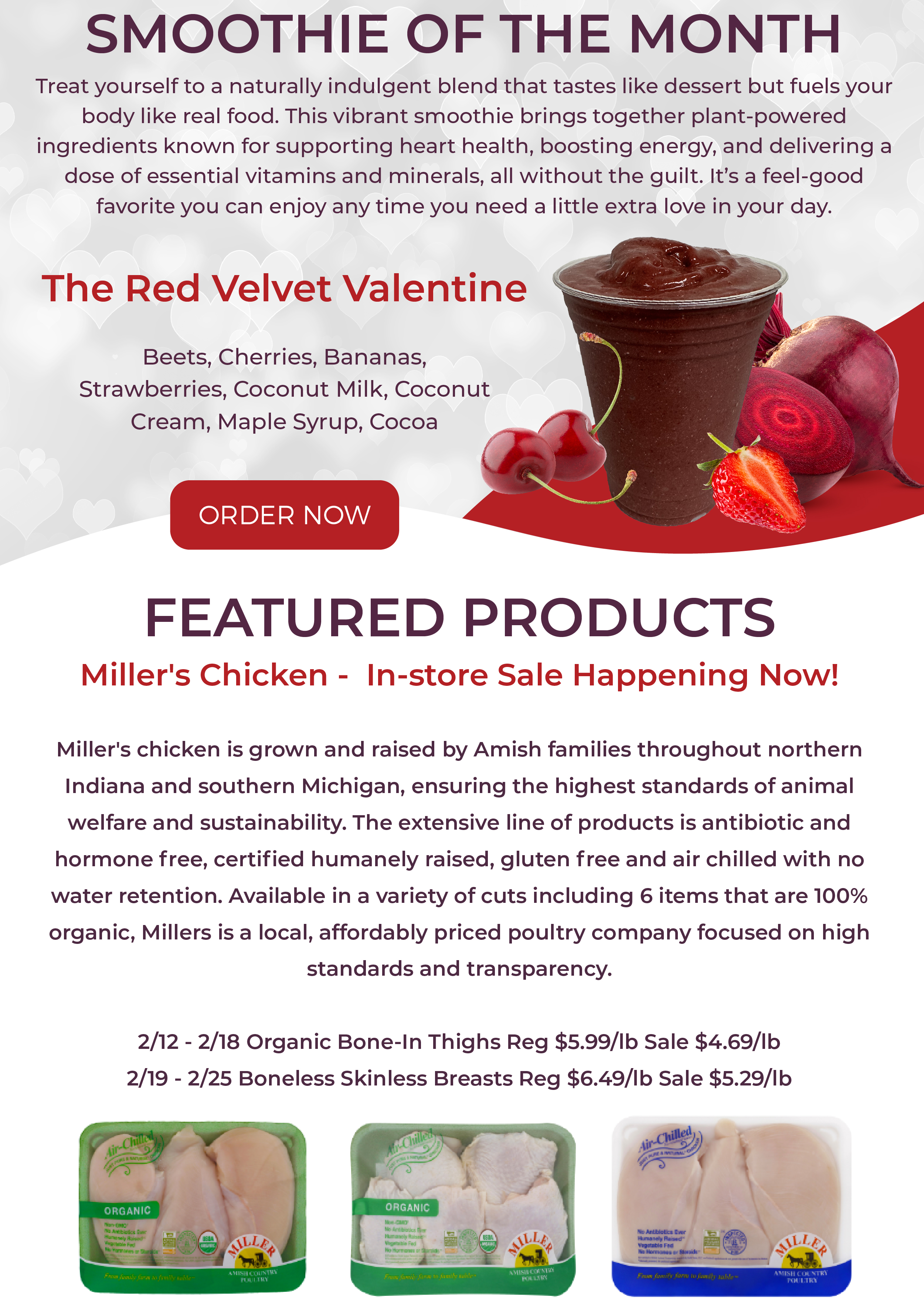 Valentine’s Specials, Poultry Deals, Guilt-Free Smoothies, and more in this article.