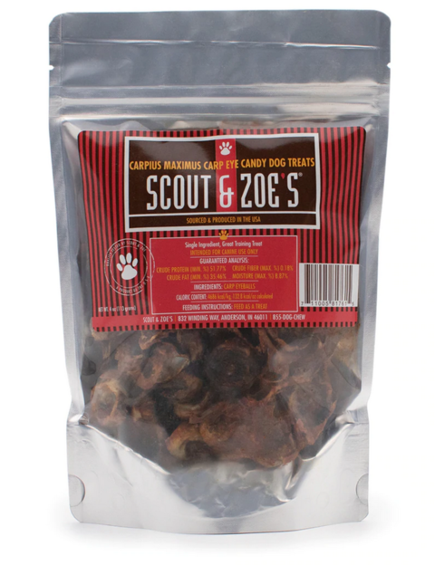 Carp Jerky is created from the red meat of the invasive Asian Carp. They slowly dehydrate the pieces of carp into tasty jerky. Carp Viddles: From the fresh waters of Kentucky, Carp Viddles are the dehydrated hearts and livers of the invasive Asian Carp. Nutritious with lots of Omega 3 fatty acids and iron from the organs, these are great treats.