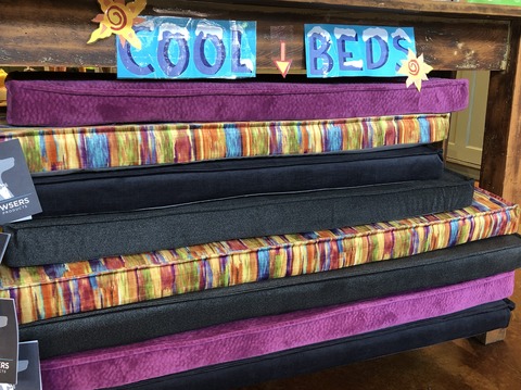 We’ve had a heck of a time finding cooling bed options for dogs for these crazy hot days, as many of the cooling beds out there have serious design flaws or logistical problems. We don’t want yucky gels in a material that might get punctured, or have to fill the bed with water that leaks out or makes them feel unstable underfoot, etc and they certainly don’t look nice. Most of them we've carried were returned. We finally found something fabulous! These are real beds. Soft, comfy, supportive and washable Memory Foam beds. Beds they’ll want to sleep on and you’ll want to have in your home. Their fully removable Memory Foam cushion not only provides exceptional support and comfort, but is also infused with COOL Gel Microbeads which help to regulate body temperature. The elegant European scalloped edge make this a stylish and luxurious option for crates, travel or a great low profile bed for the home. Zippered Cover is machine washable and dry-able. Foam insert is 2.5" thick (1.5" furniture grade foam topped with 1" of Cool Gel Memory Foam). We brought in two sizes (talk to us if you need an even bigger size) in three colors. These could be great year-round bed options for dogs that tend to run hot like Huskies and Bernese Mountain dogs.