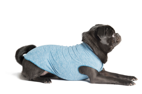 The Sun Shield Tee is silky soft, lightweight stretch jersey with a UPF-50 rating that blocks 98% of the sun’s harmful UV rays. It is not a chemical treatment - it's a mechanical quality of the yarn so the protection won't diminish with washing. Super comfortable indoors and out and perfect for all sorts of applications beyond sun protection too: skin conditions, wound care, topical medications, works great as an anti-anxiety calming aid that can be worn all day. They really reduce heat absorption too. Gold Paw tested their black Lab, Luke, out in the sun with an infrared thermometer gun and found his fur was more than 40 degrees cooler under the Tee than without – it’s wearable shade! Want extra cooling? Get it wet and your pup can enjoy the evaporative cooling effect! Made in the USA. Machine washable and can be worn easily under a harness.