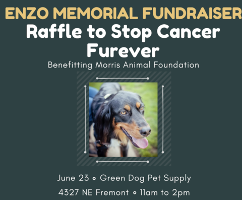 | | Enzo Memorial Fundraiser to Stop Cancer Furever! Have you or anyone you know ever lost a dog to cancer? The sad truth is that most of you can probably answer yes to this question, as it is now the leading cause of death in dogs over 1 year of age. When one of our customers lost her precious dog Enzo to lymphoma, she decided to do something about it, and she began to hold annual fundraisers to benefit cancer research, which we have supported each year. On Sunday June 23rd from 11am - 2pm we'll be hosting a benefit with an amazing raffle, a fun activity and free cookies and cupcakes for dogs!