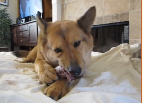 Some of the very best teeth cleaners are chicken necks, duck necks and turkey necks (suiting 3 sizes of dog). It’s very true that COOKED poultry bones are very dangerous to dogs, as they can be sharp and splintery. Raw necks are different. The bones in the neck are tiny and crunchy and surrounded in connective tissue and cartilage. They’re safe to chew through and very supportive nutritionally. Our favorite holistic vet recommends three raw poultry parts a week in place of commercial joint supplements, due to the high levels of natural glucosamine and chondroitin and other joint supporting nutrients in the collagen and connective tissues of bone in a highly bio-available state.. As they eat them, their teeth and gums are also getting a great flossing! The enzymes in the raw meat help to fight bacteria in the mouth. Dogs love them, and many cats love chicken necks too (either whole, which is often a young cat’s game, or in 1/2 inch slices). This was Otis’ favorite treat! Check out the video in this blog post and turn on the sound! Necks have another nice benefit for dogs with anal gland issues – several chicken necks a week can make nice hard stools that help to express the anal glands more effectively.