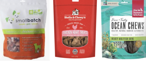 | | ALTERNATIVE CHEWS FOR CATS AND SMALL DOGS! Most cats and small dogs have fewer options when it comes to keeping their teeth and gums healthy, especially things that can scrub the back teeth. We mentioned the freeze dried chicken necks above, but our two other favorites for these pets are: -Freeze dried chicken hearts, (We carry both Small Batch and Stella and Chewy's freeze dried hearts). They're a great size as cats need to use their back teeth to bite into them, and their teeth are scrubbed as they do it, kind of like those prescription T/D things that scrape the teeth but have ingredients we would certainly not recommend feeding as meals) - Ocean fish chews from Honest Kitchen.. They all can be gnawed on, are very digestible and sustainably sourced, and can also be cut with a knife or a pair of kitchen shears if you'd like to make them a more manageable size. Holding onto the fish chews while your pet is learning to eat these is easy if you'd like to monitor or just to help them negotiate it. NEWSLETTER SPECIAL! Mention this newsletter at the register and take 15% Off of ONE Bag of Hearts OR Fish Chews |