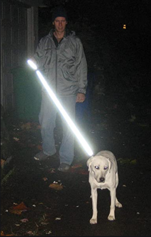| | PLEASE PROTECT YOURSELVES AND YOUR DOGS AT NIGHT! I’m amazed every single night when I drive home from work in the dark, how many people are out, walking their dark colored dog (and sometimes a baby in a dark stroller too) in dark clothing on dark streets that don’t even have sidewalks or very many streetlights, and are not wearing a single reflective item or light! I shudder to think of any of you or your dogs who are pulling ahead of you becoming injured or killed because someone with old-lady eyes like me couldn’t see you step out in front of my car. It would really ruin your day, and mine… We of course have solutions for this, my favorite being leashes that light up or reflect light, as they highlight both the human and the dog. The photo here is showing the reflective power of Cycle Dog’s Max Reflective leashes. They’re made in Portland from recycled bike inner tubes, which give you great gripping power and are waterproof, so they never stink. We also have amazing battery powered (rechargeable) light-up leashes that can be switched from solid to flashing light the whole length of the leash (available in blue or green). Ask us for the PDF we made that shows all of our choices for lights for their collars as well as flashing collars and leashes. I’m sure that Foot Traffic also has a variety of options for runners like arm bands, etc. that you could use while walking dogs.